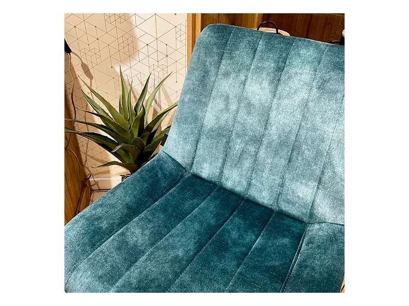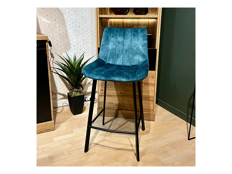 Lot 2 tabourets de bar velours bleu canard pieds métal noir – NANY 2