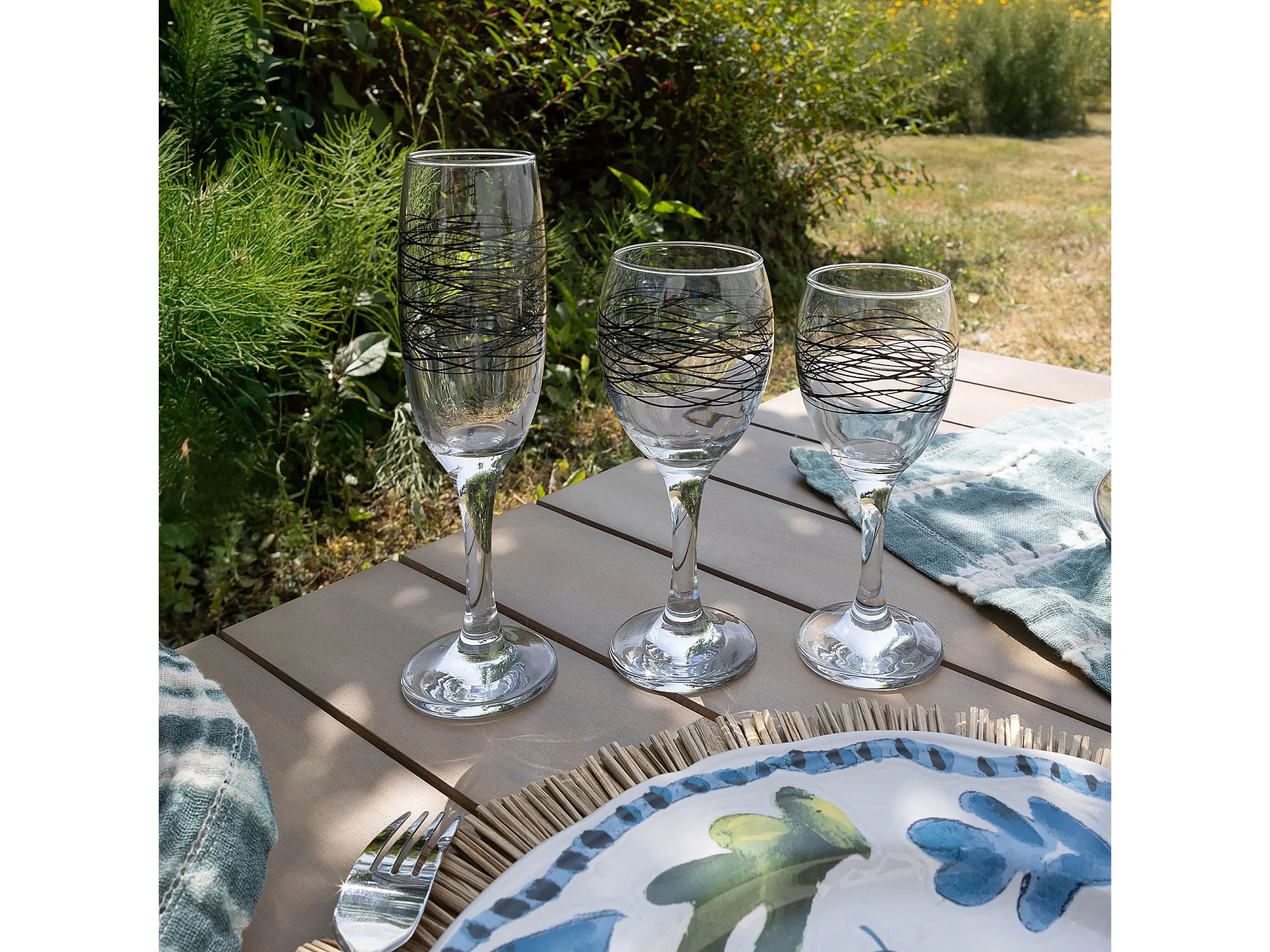 Novastyl - Lot 6 Verres A Pied Serpentin 24.5cl En Verre Avec Ligne Noire