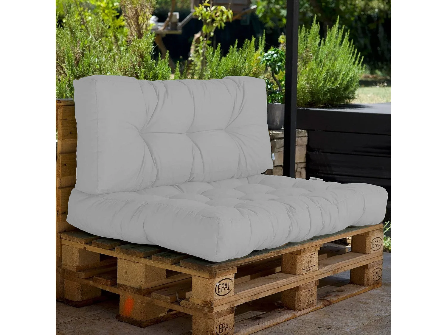 Lot coussins extérieur pour palette gris galet 120x80 Imperméables Anti-UV DECOARTS