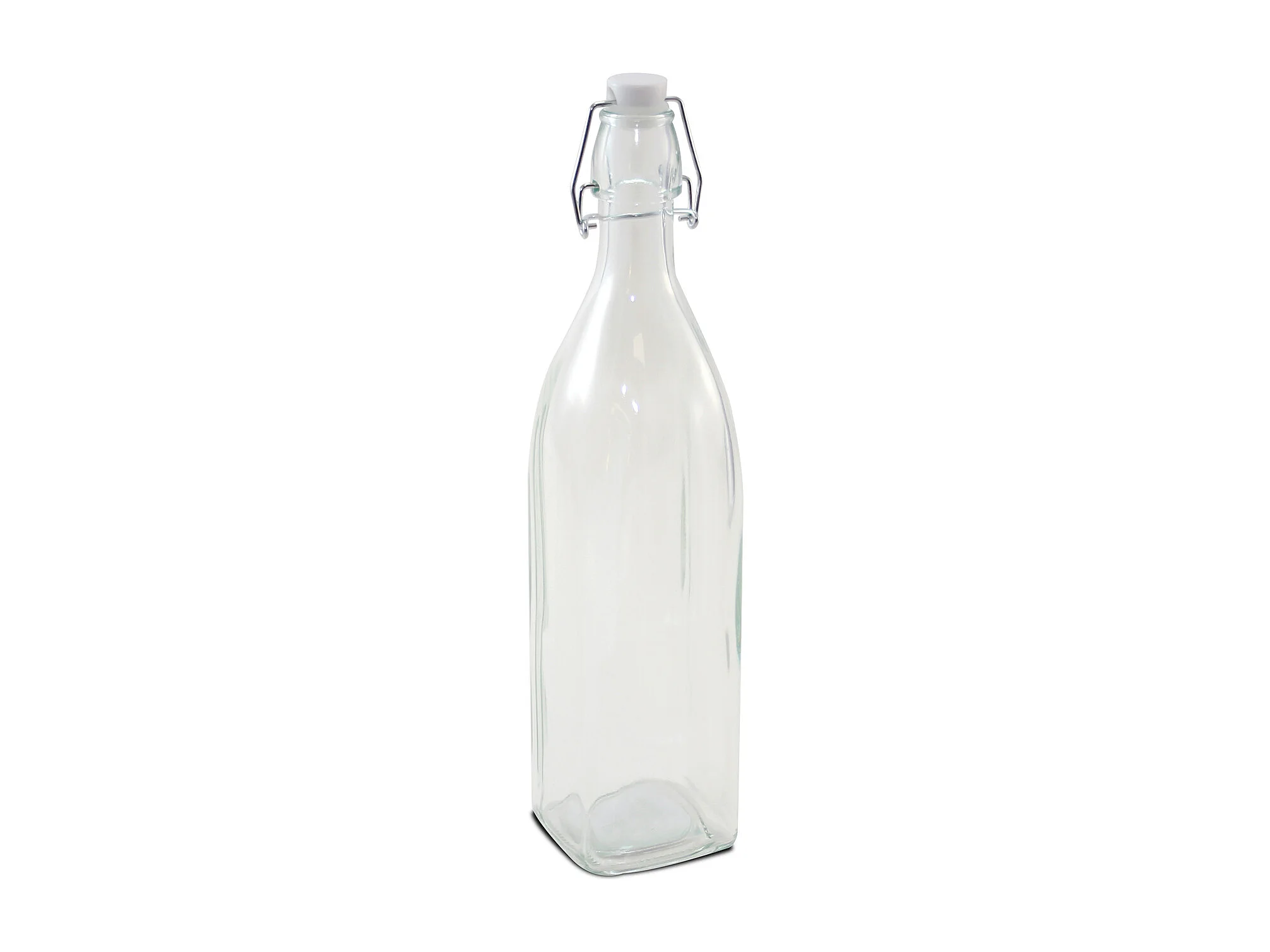 Lot de 10 bouteille carrée en verre avec bouchon hermétique, carafe bouteille avec fermeture à clip, capacité 1L - Longueur 8,2 x Largeur 8,2 x Hauteur 31,8 cm