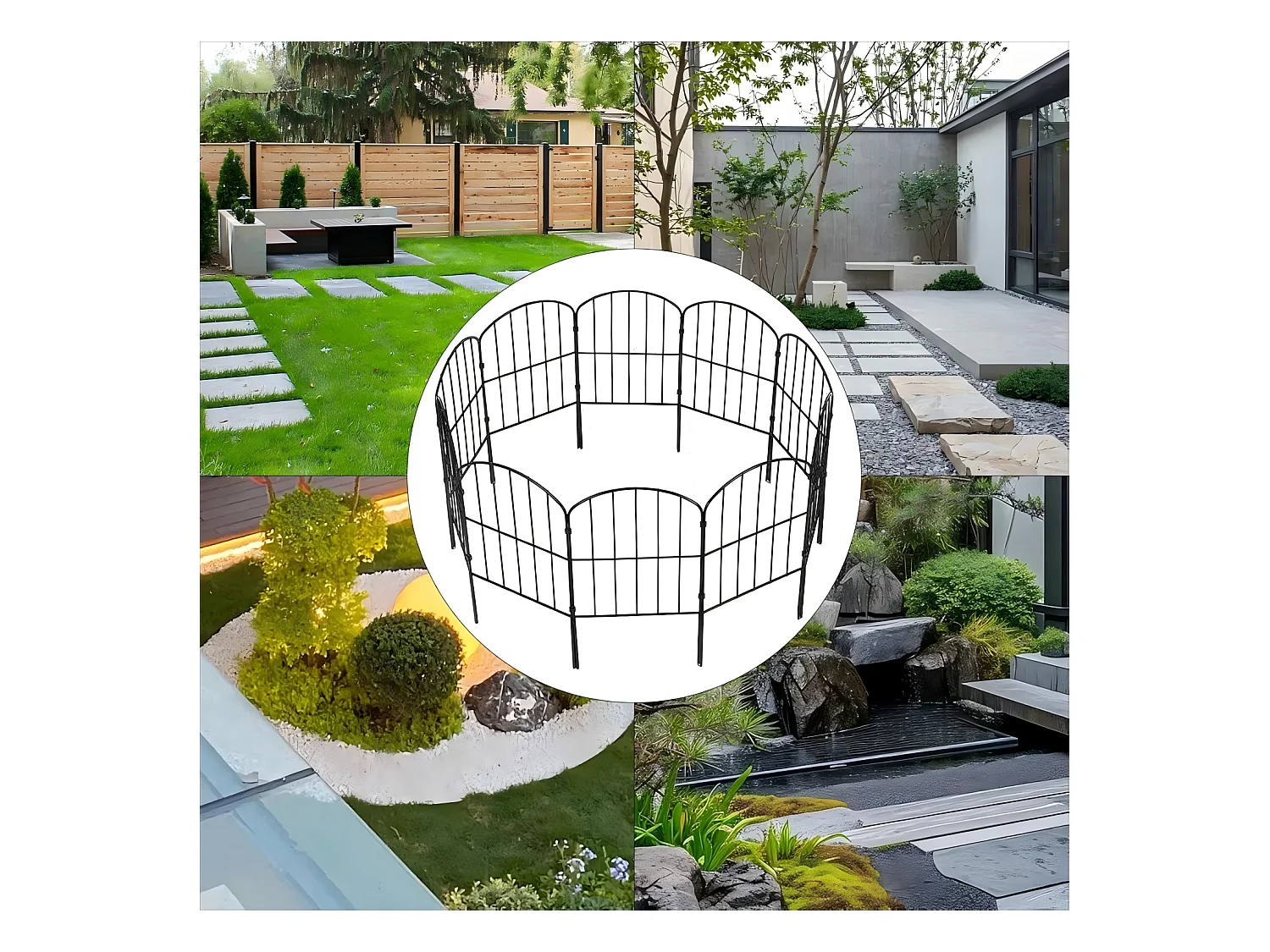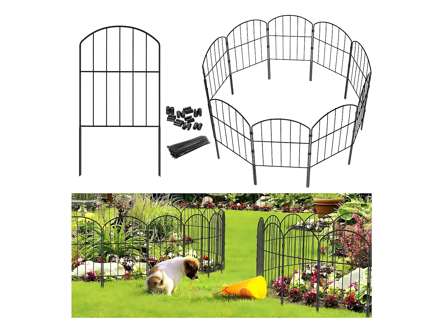 Lot de 5 clôtures de jardin décoratives avec ornements métal noir