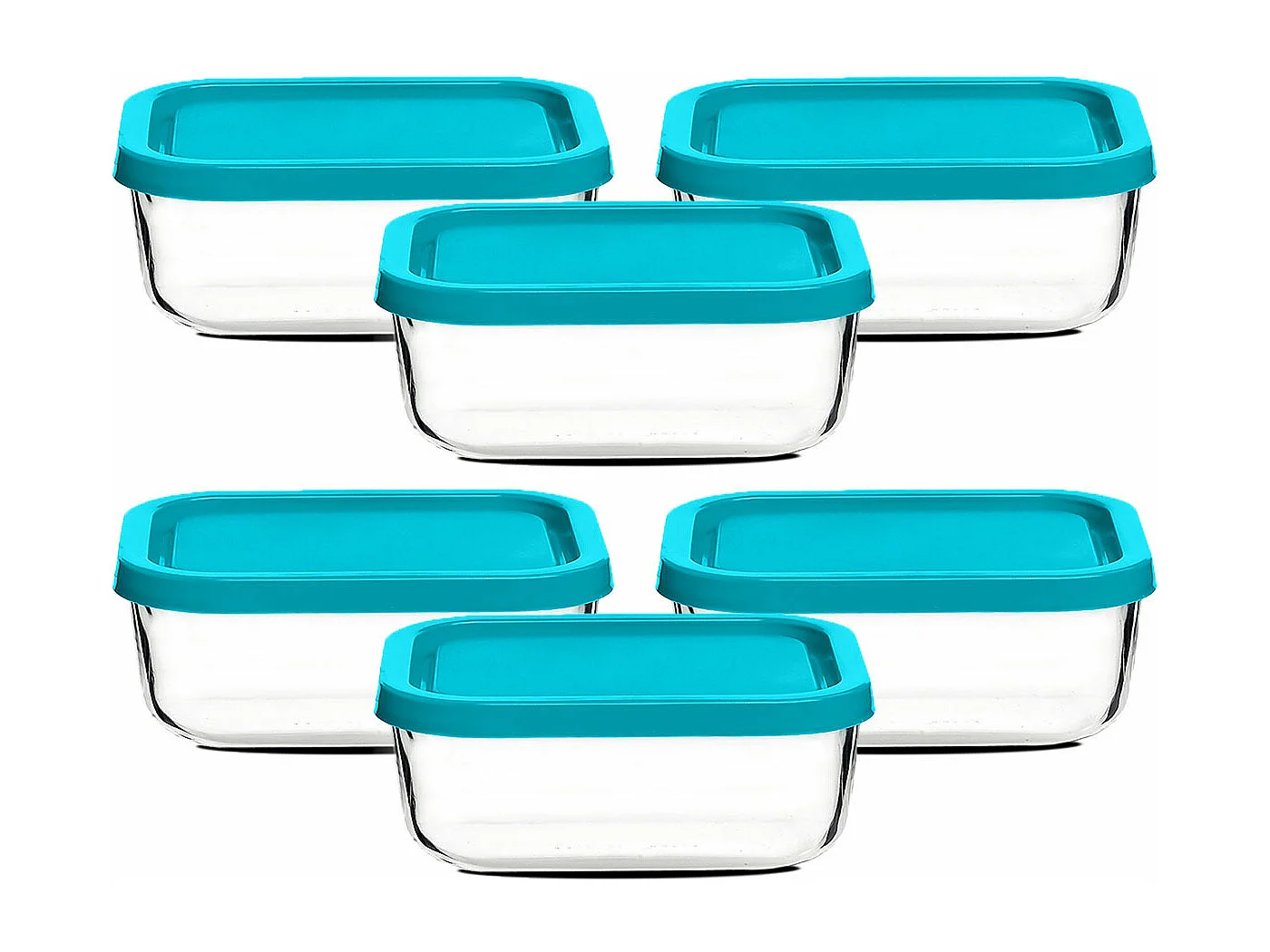 Lot de 6 boîte de conservation rectangulaire avec couvercle hermétique, frigoverre en verre - Longueur 13 x Profondeur 10 x Hauteur 6.6 cm