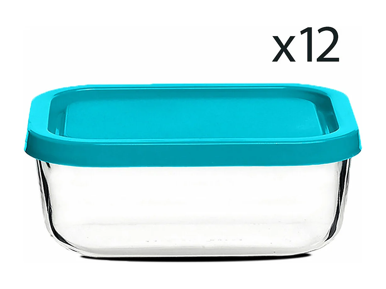 Lot de 12 boîte de conservation rectangulaire avec couvercle hermétique, frigoverre en verre - Longueur 13 x Profondeur 10 x Hauteur 6.6 cm