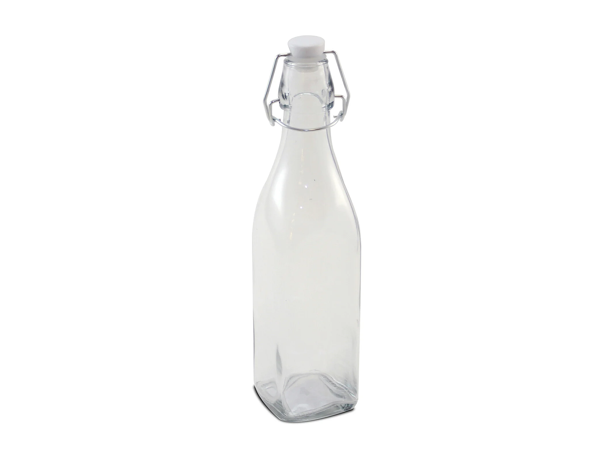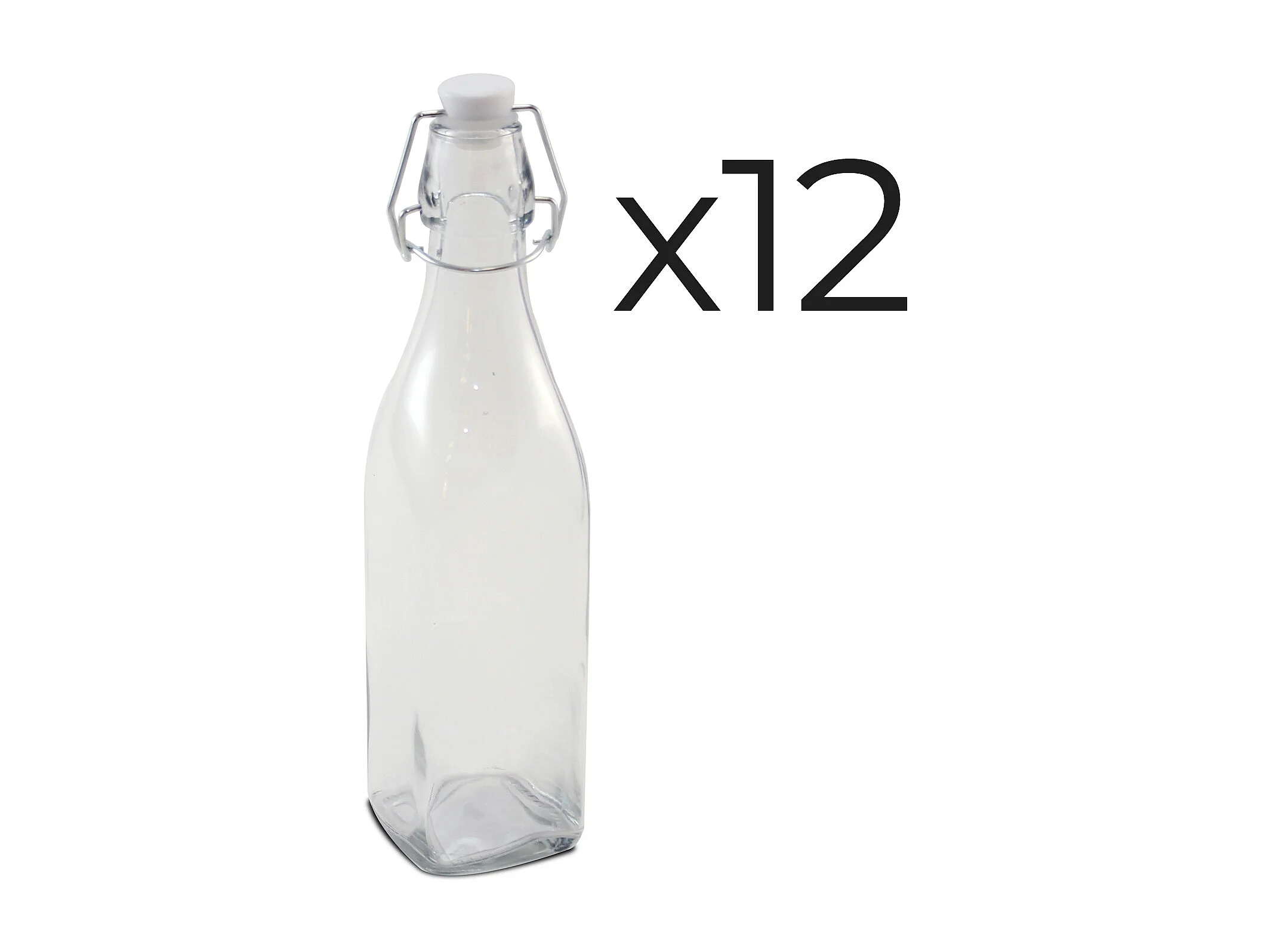 Lot de 12 bouteille carrée en verre avec bouchon hermétique, carafe bouteille avec fermeture à clip, capacité 0,5L - Longueur 6,5 x Largeur 6,5 x Hauteur 27 cm