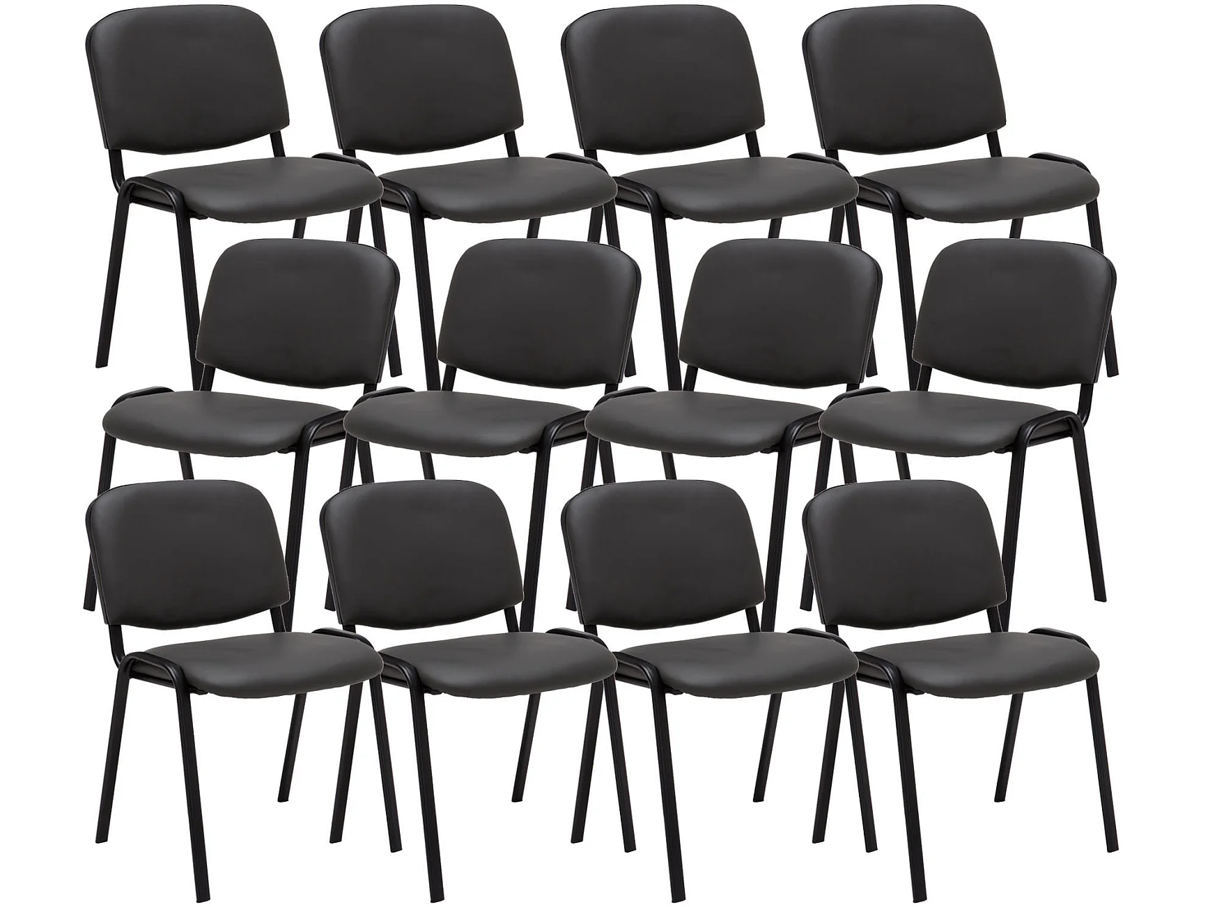 Lot de 12 Chaise de conférence - Similicuir & Métal noir mat - Gris - Ken
