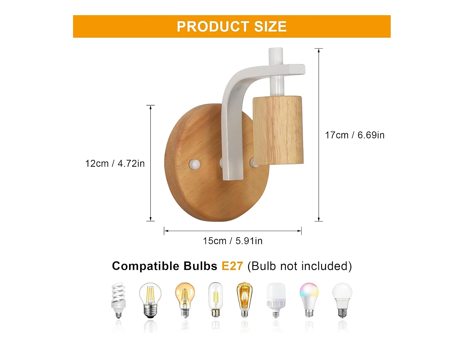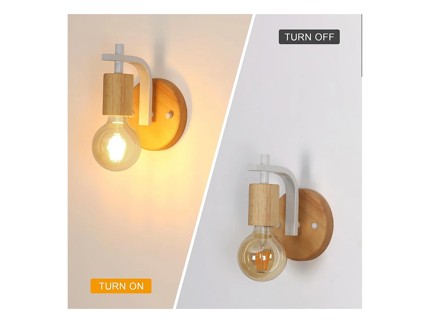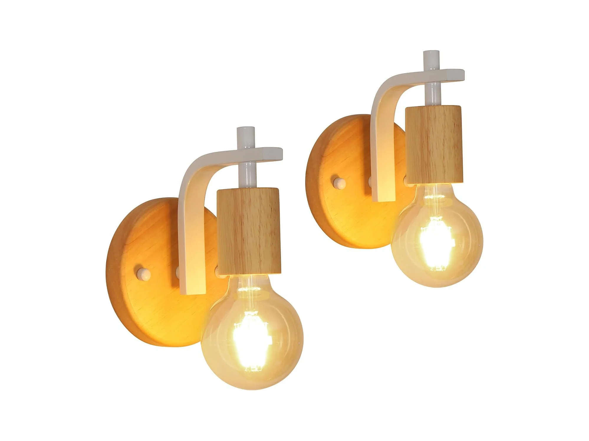 Lot de 2 appliques murales d'intérieur en bois E27, pour chambre, salon, couloir (ampoules non incluses)