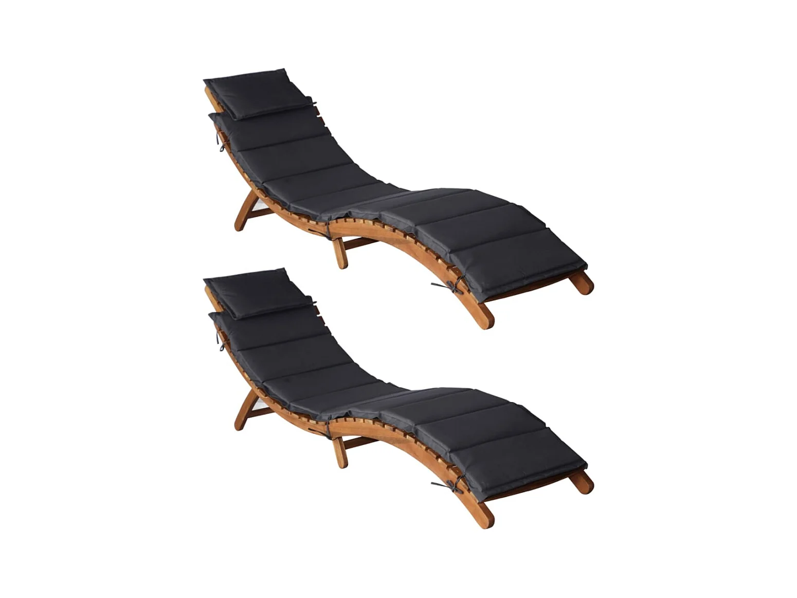 Lot de 2 Bains de soleil et coussins Gris foncé Bois massif acacia FR66196