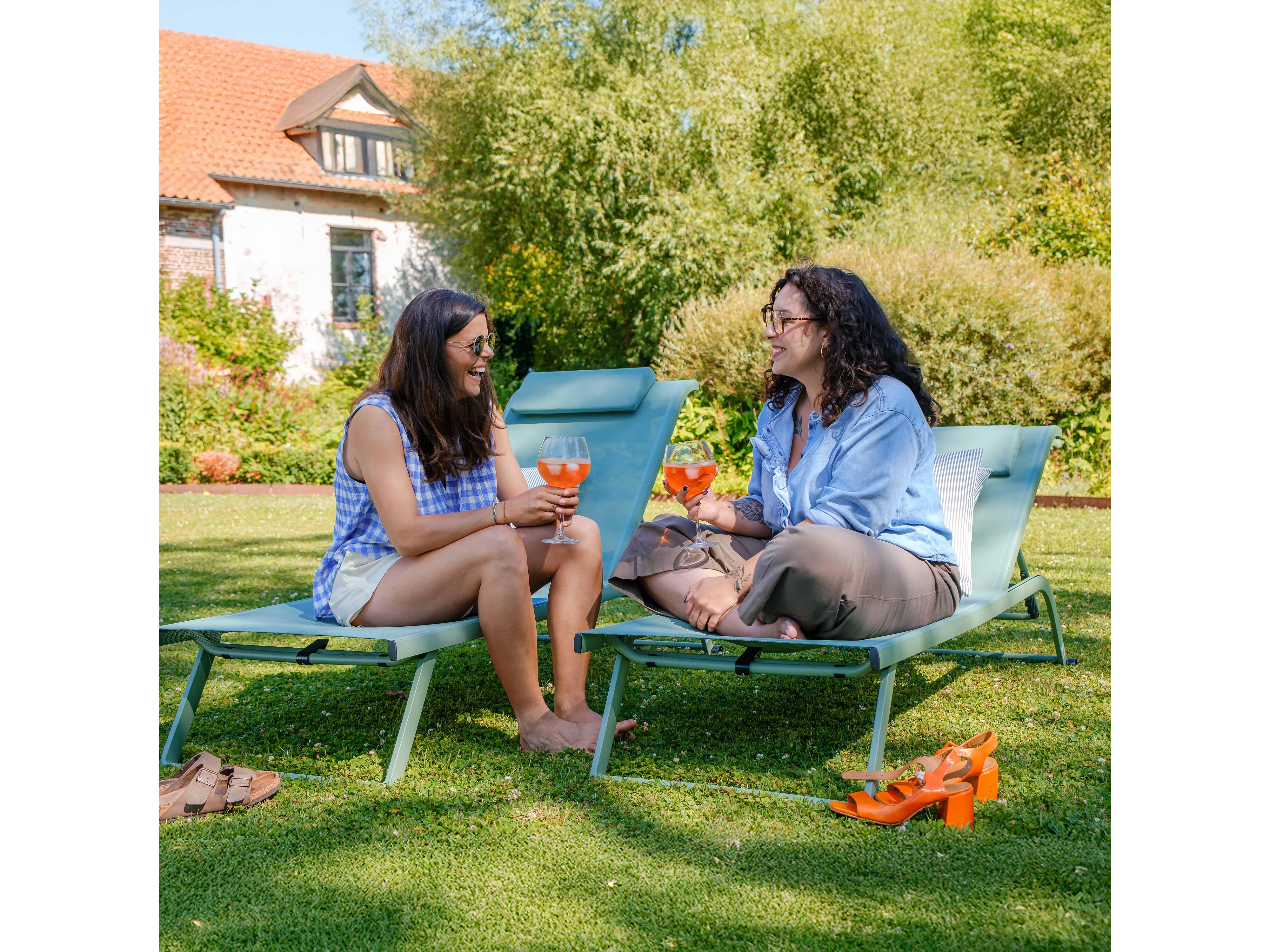 Lot de 2 bains de soleil inclinable avec roues vert cactus - Olmeta