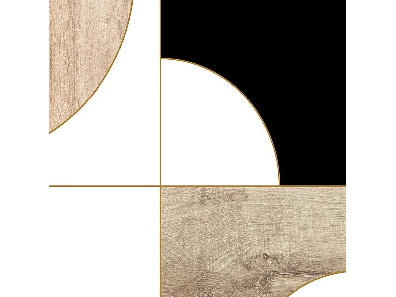 Crédence adhésive pour salle de bain en PVC style bois carreaux de ciment beige et noir 140x30 cm (en 2 bandeaux)
