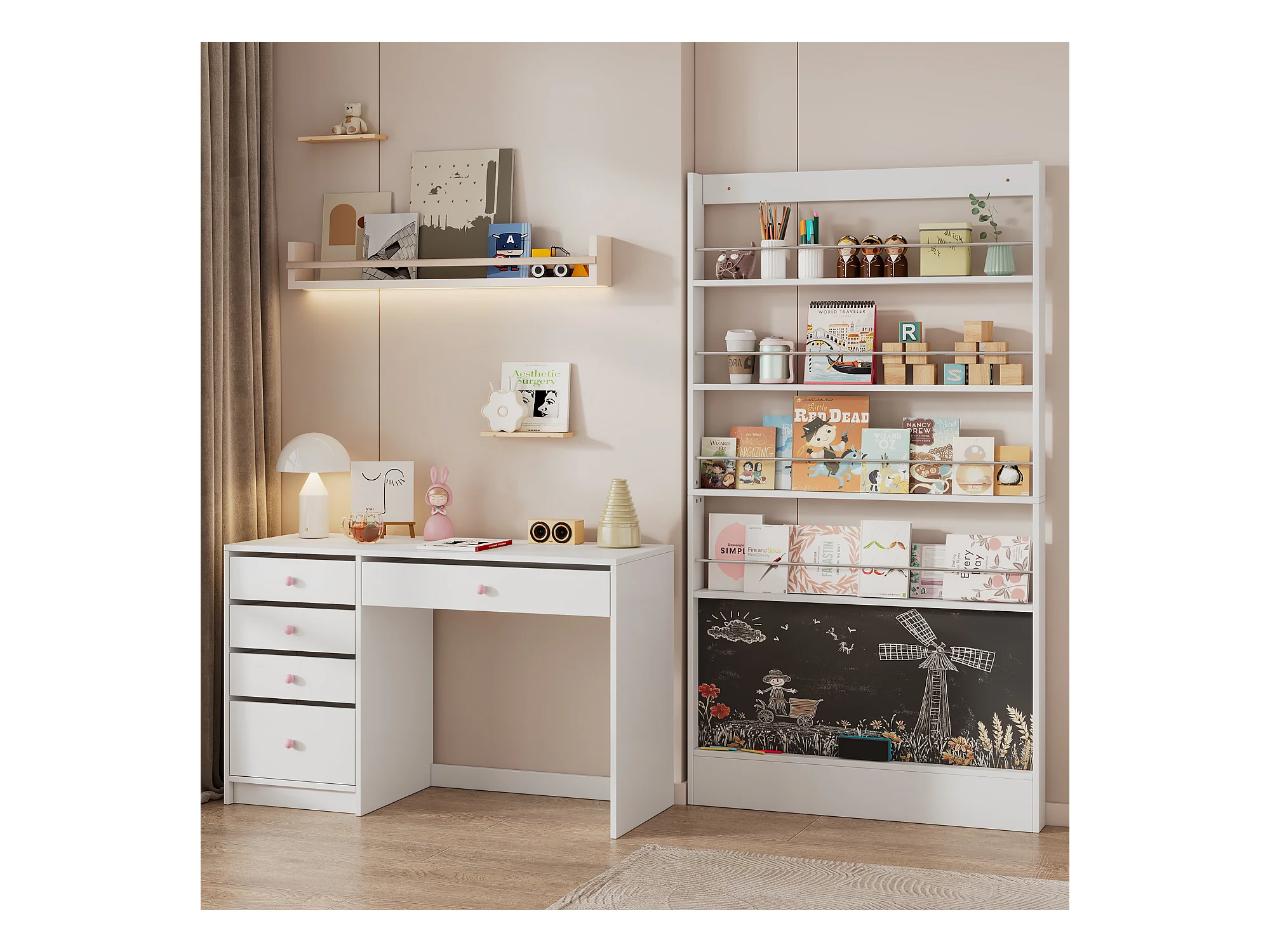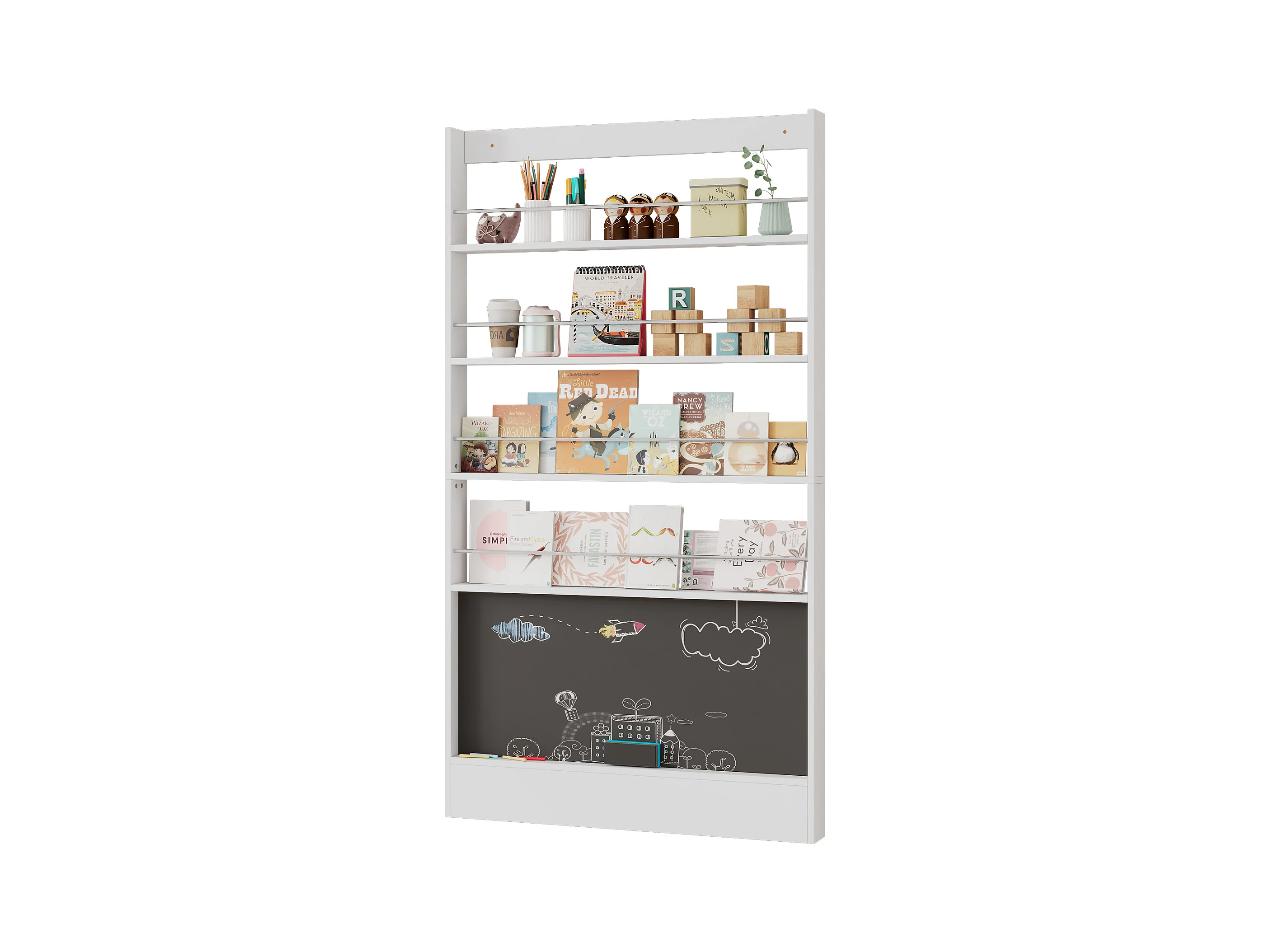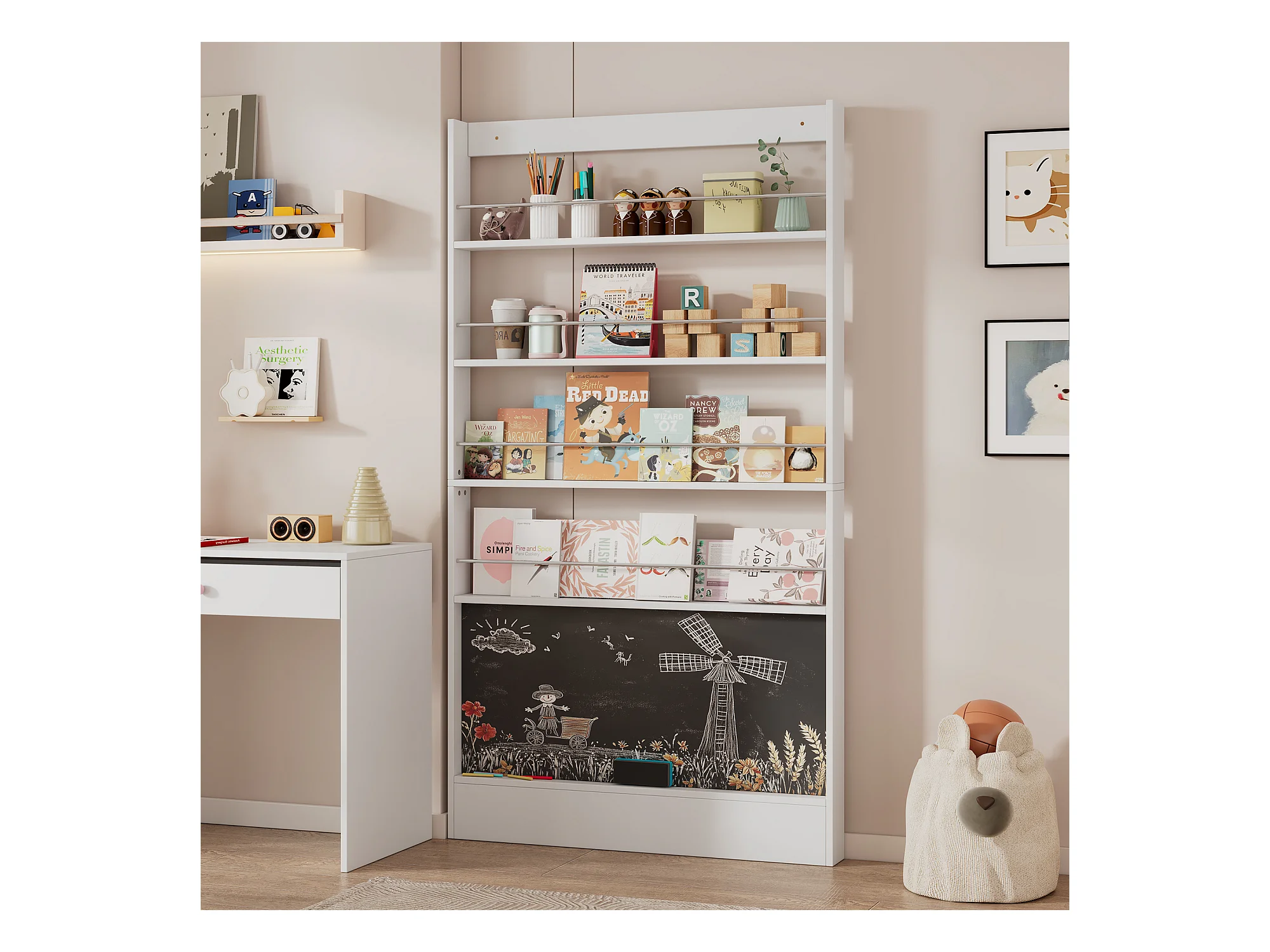 Bibliothèque enfant 100x10x180 cm - étagères de rangement à 4 niveaux - avec tableau noir - blanc
