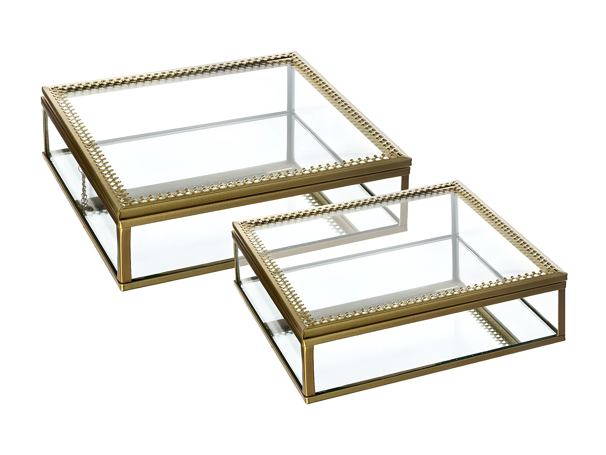 Lot de 2 Boîte à Bijoux en Verre et Métal doré
