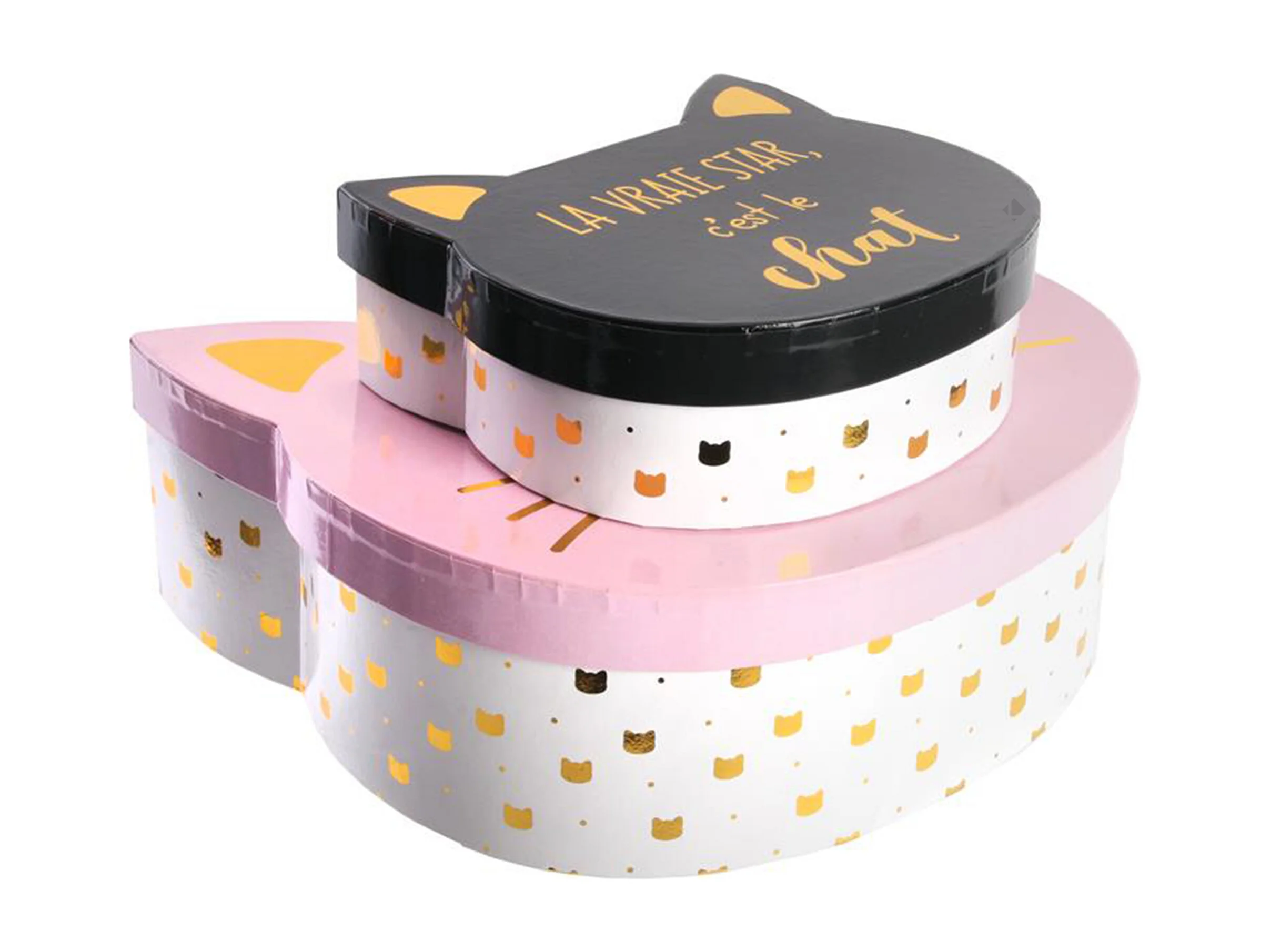 Lot de 2 Boîtes de Rangement "Chat" 25cm Rose