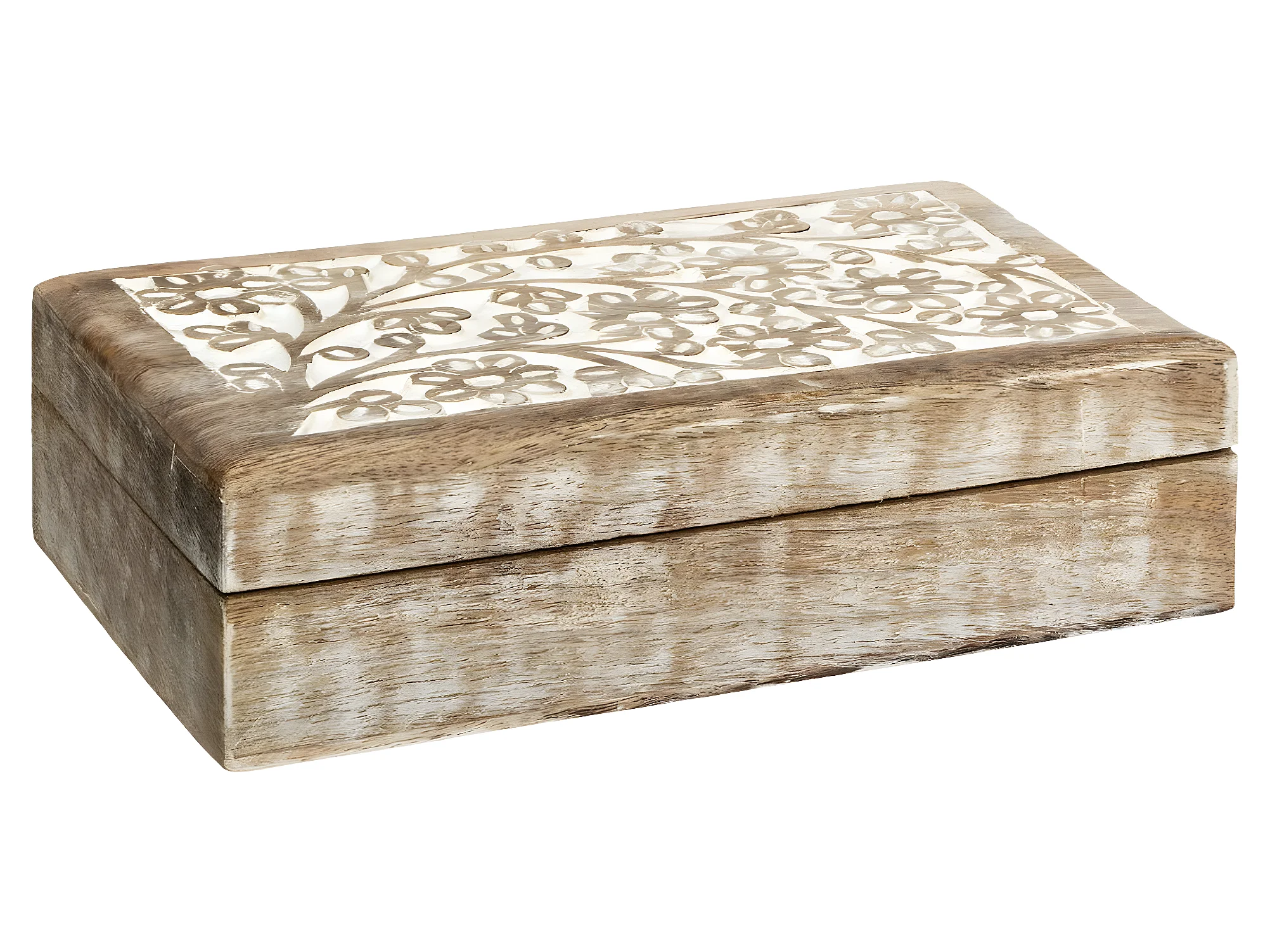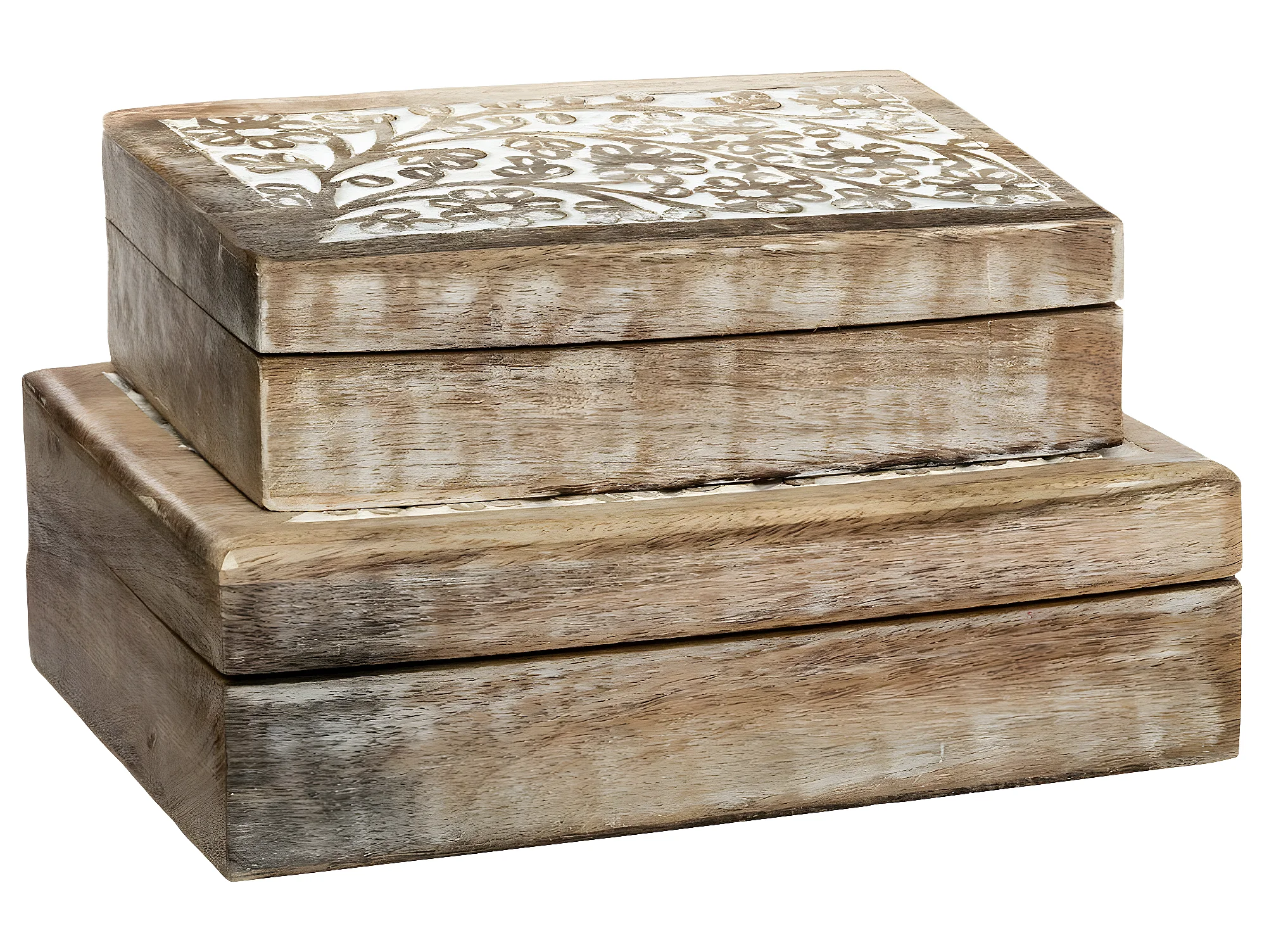 Lot de 2 Boîtes de rangement en Manguier sculpté et blanchi