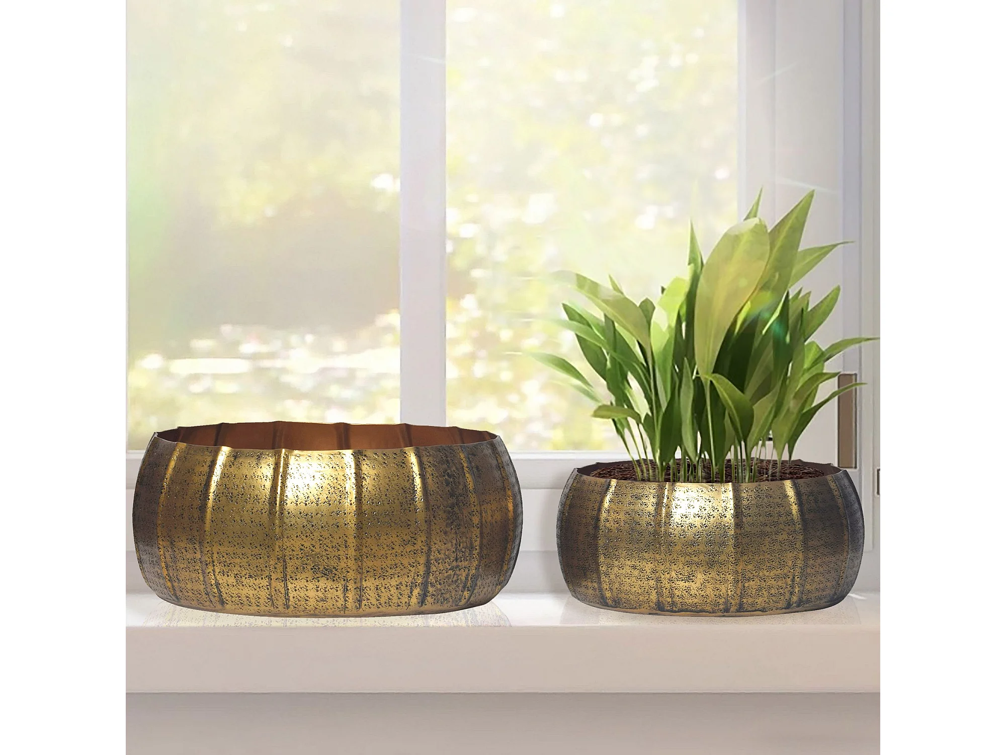 Lot de 2 Cache-Pots Métal Aluminium Martelée Ronde Jardinières Moderne