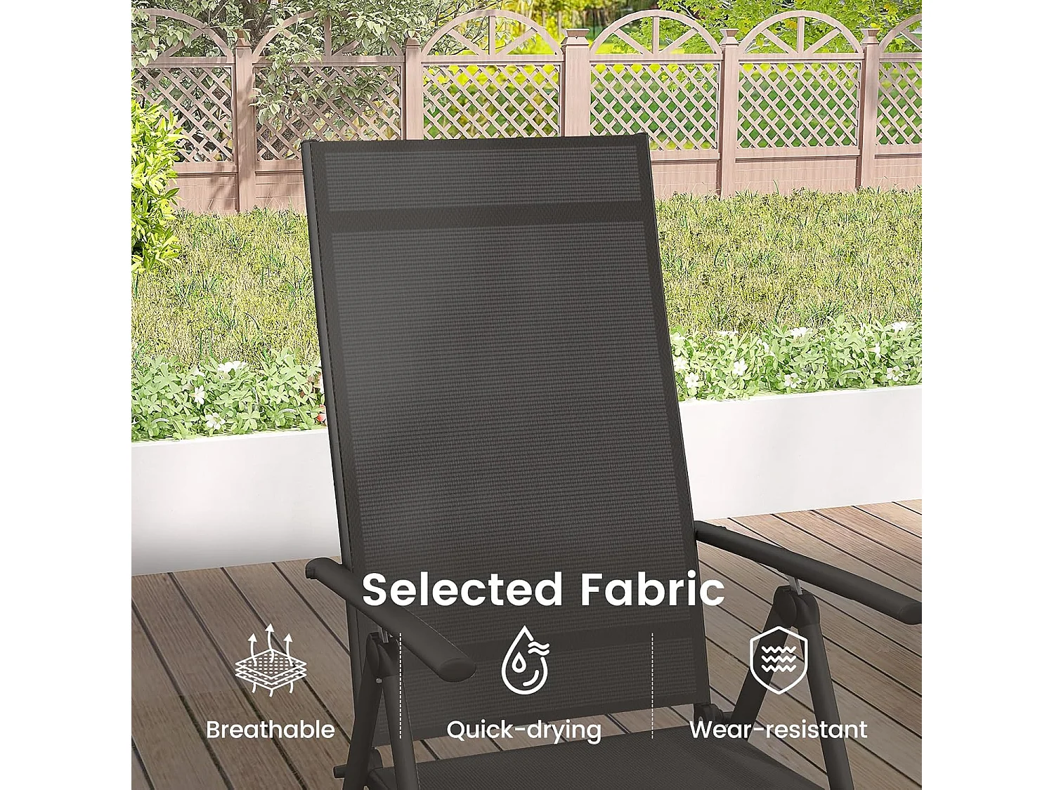 Lot de 2 Chaise de Jardin Pliante avec Cadre Métallique, Fauteuil d’Extérieur avec Dossier Réglable sur 7 Positions, Charge 180 KG (Noir)
