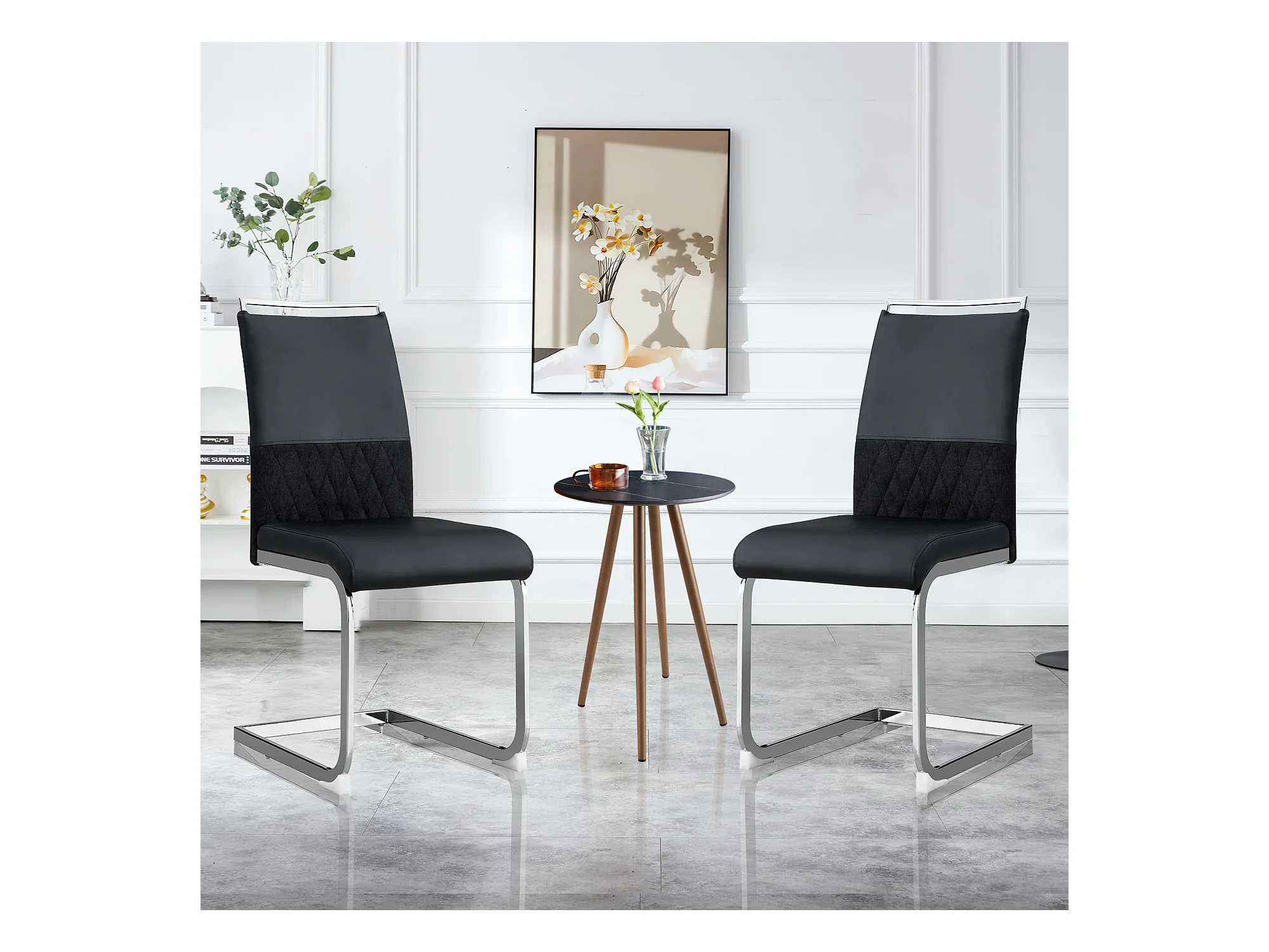 Lot de 4 Chaise cantilever Structure métallique chromée Rembourrage en Simili Cuir - Noir