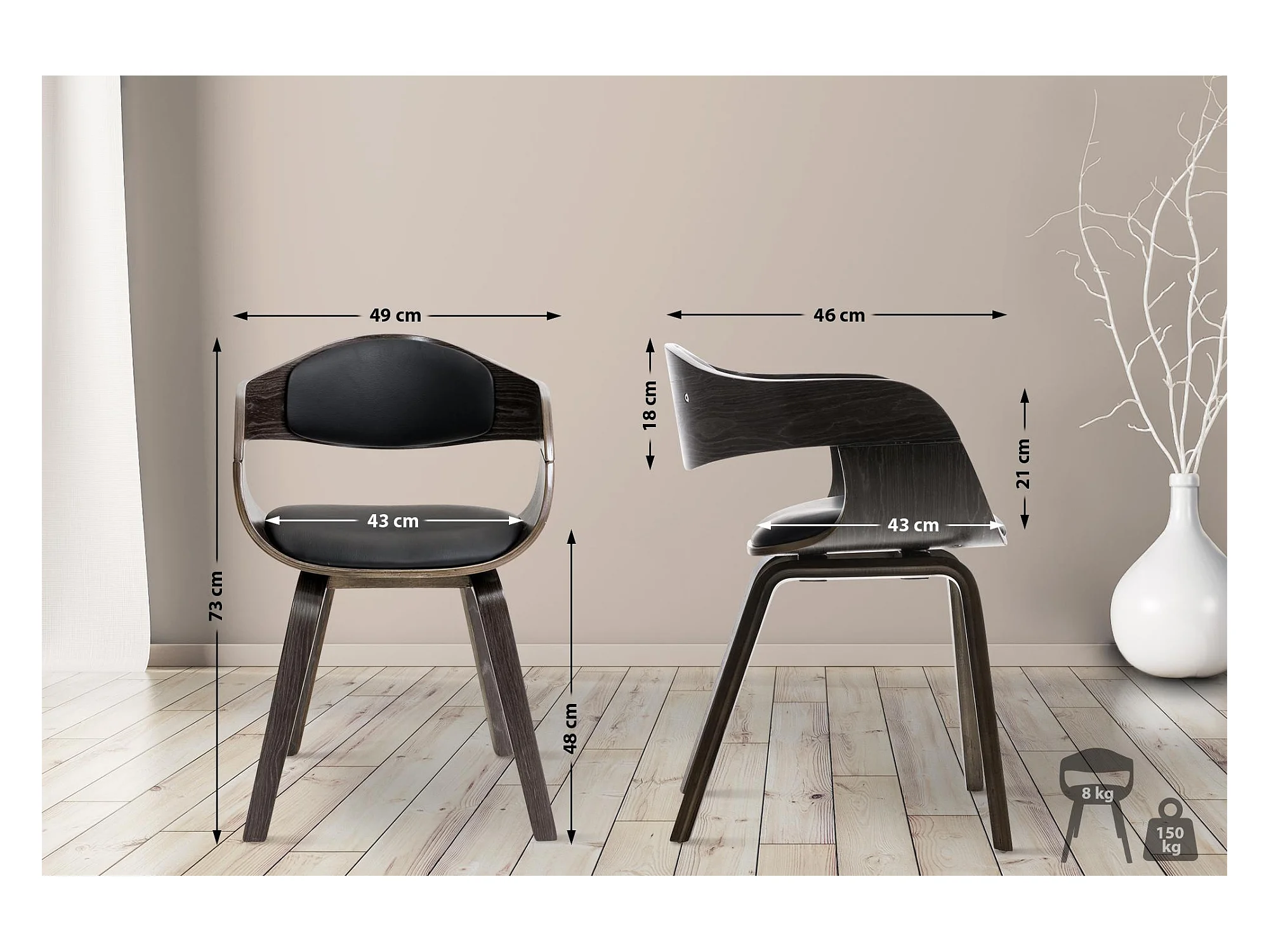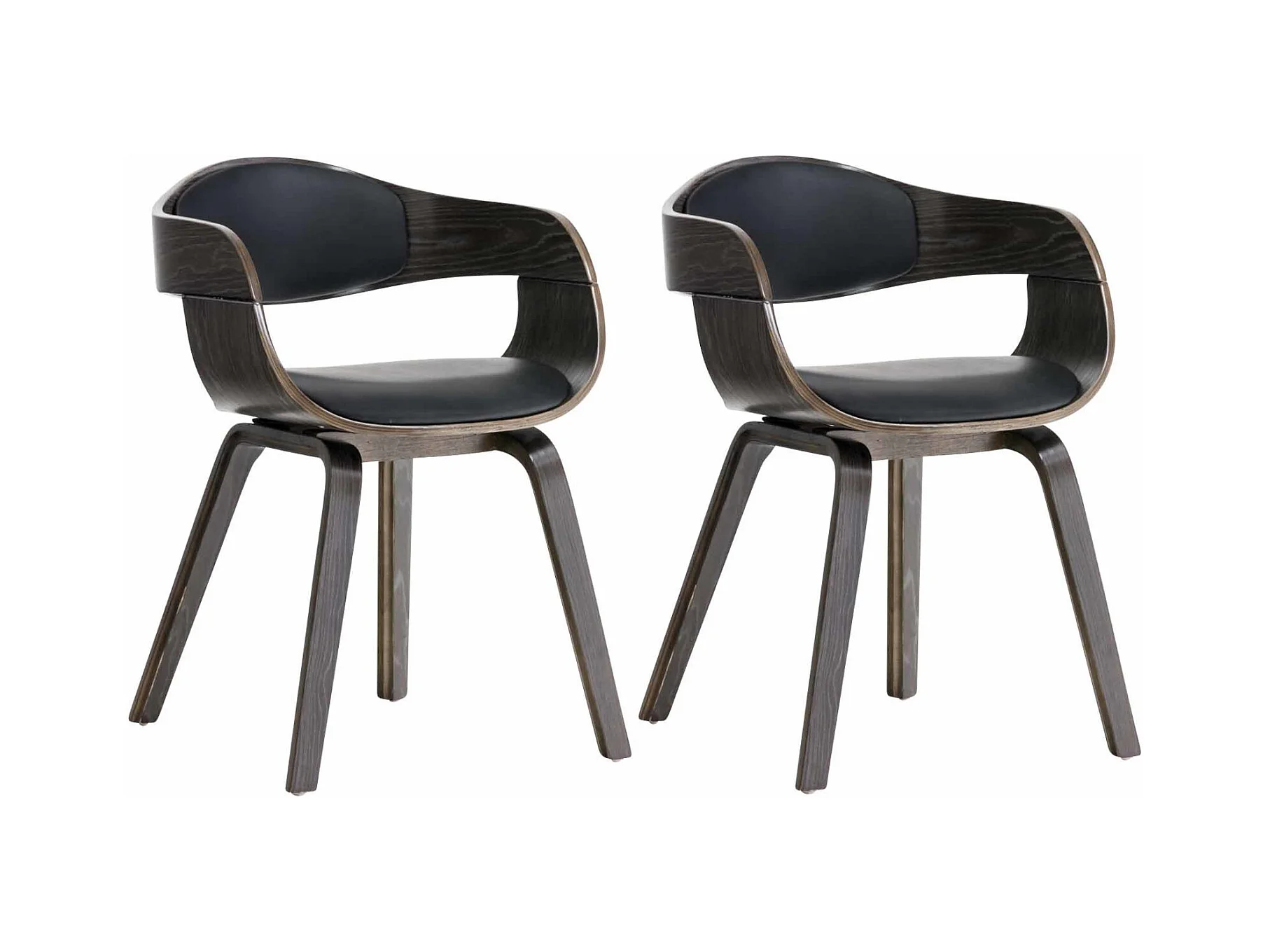 Lot de 2 chaises avec accoudoirs - Similicuir - Noir / Gris - Kingston