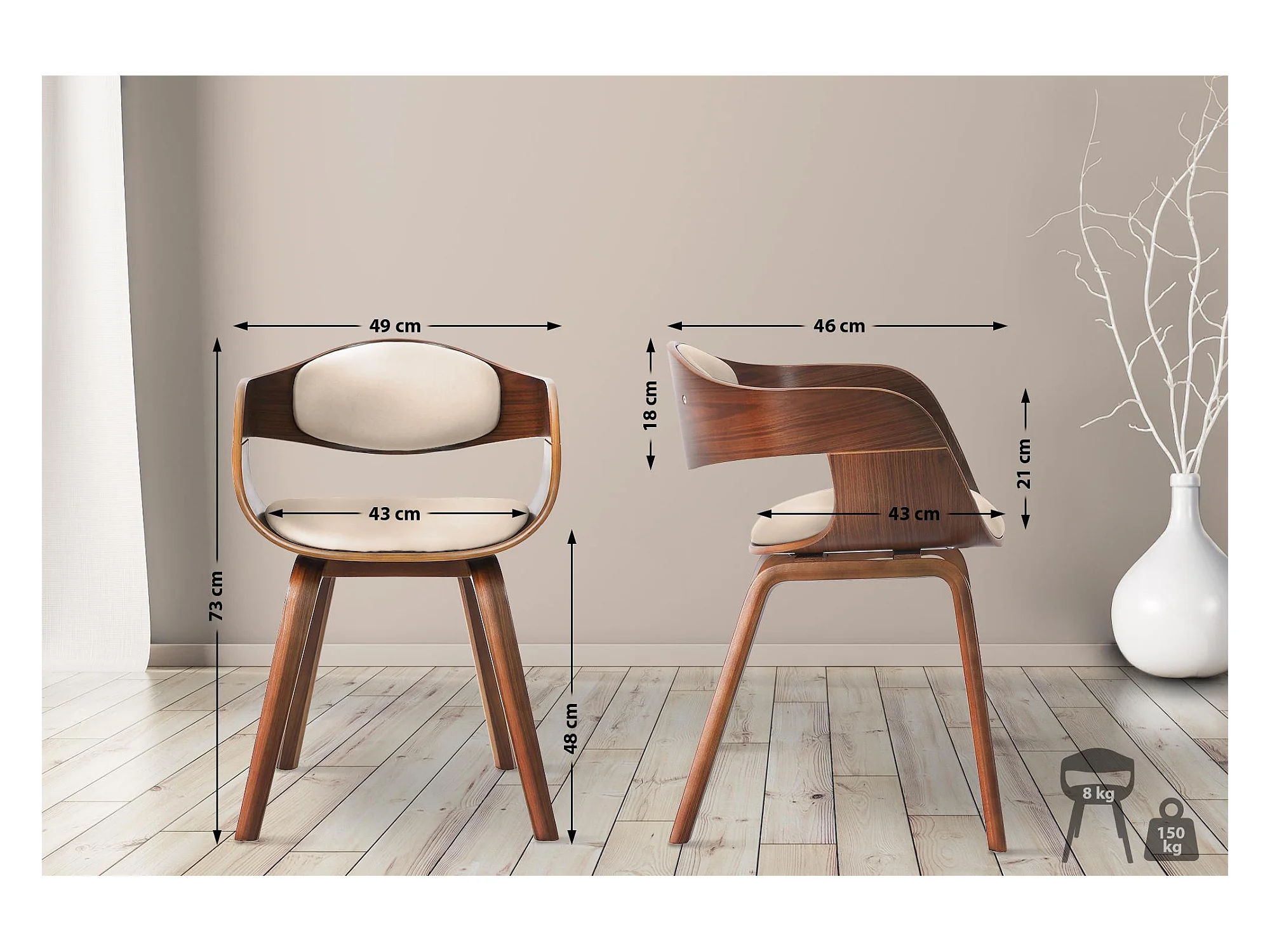 Lot de 2 chaises avec accoudoirs - Similicuir - Noyer / Crème - Kingston