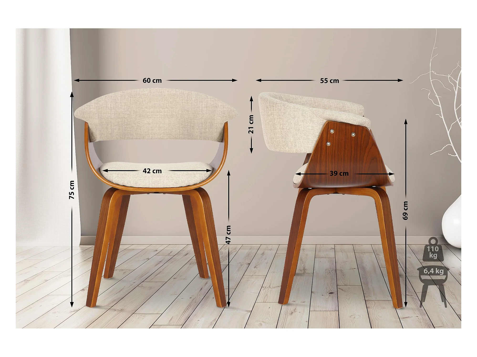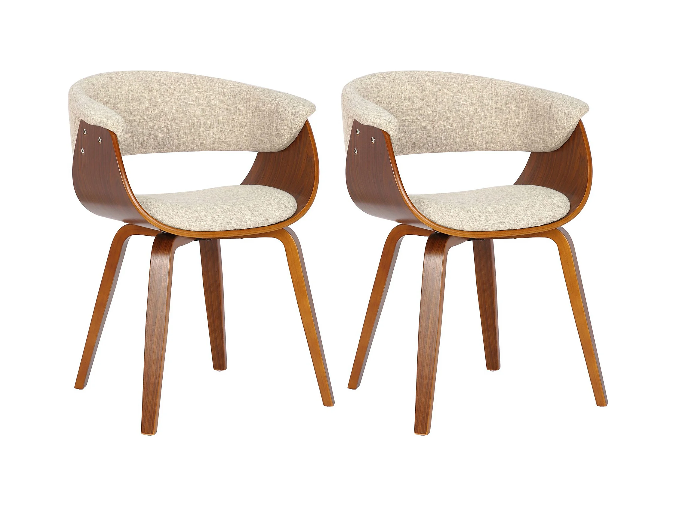 Lot de 2 chaises avec accoudoirs - Tissu - Noyer / Crème - Bruce