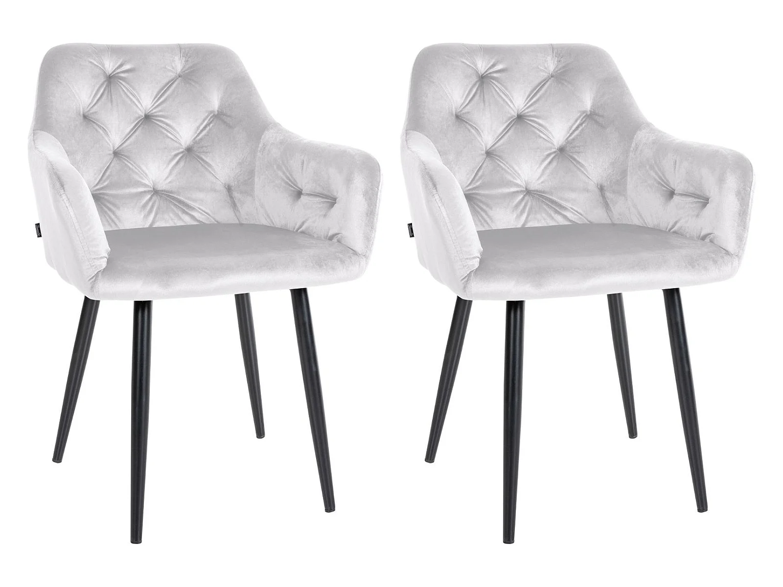 Lot de 2 chaises avec accoudoirs - Velours - Gris - Stanley
