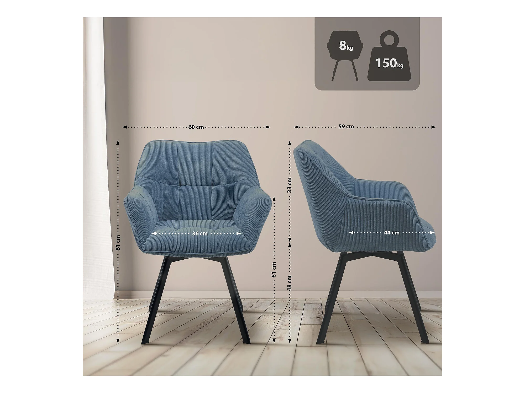Lot de 2 chaises avec accoudoirs - Cordon - Bleu - Jordi