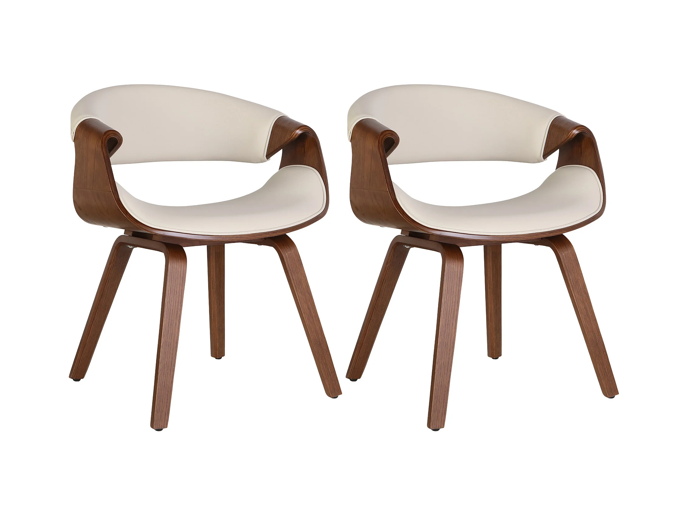 Lot de 2 chaise salle à manger - Similicuir - Chêne / Crèmes - Foley