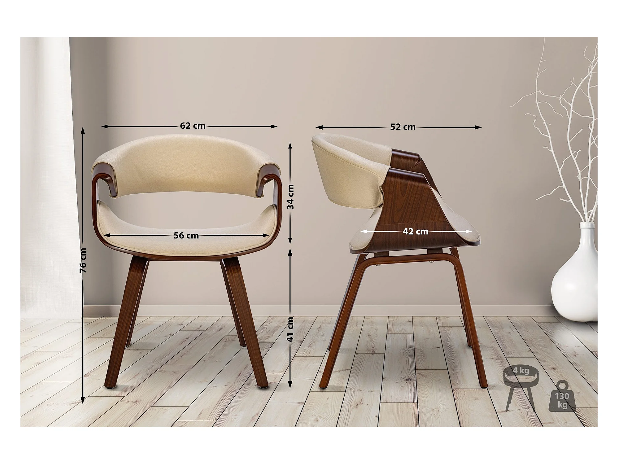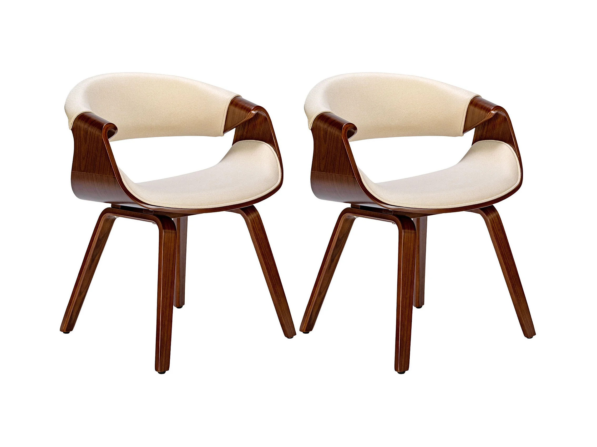 Lot de 2 chaise salle à manger - Tissu - Noyer / Crème - Foley