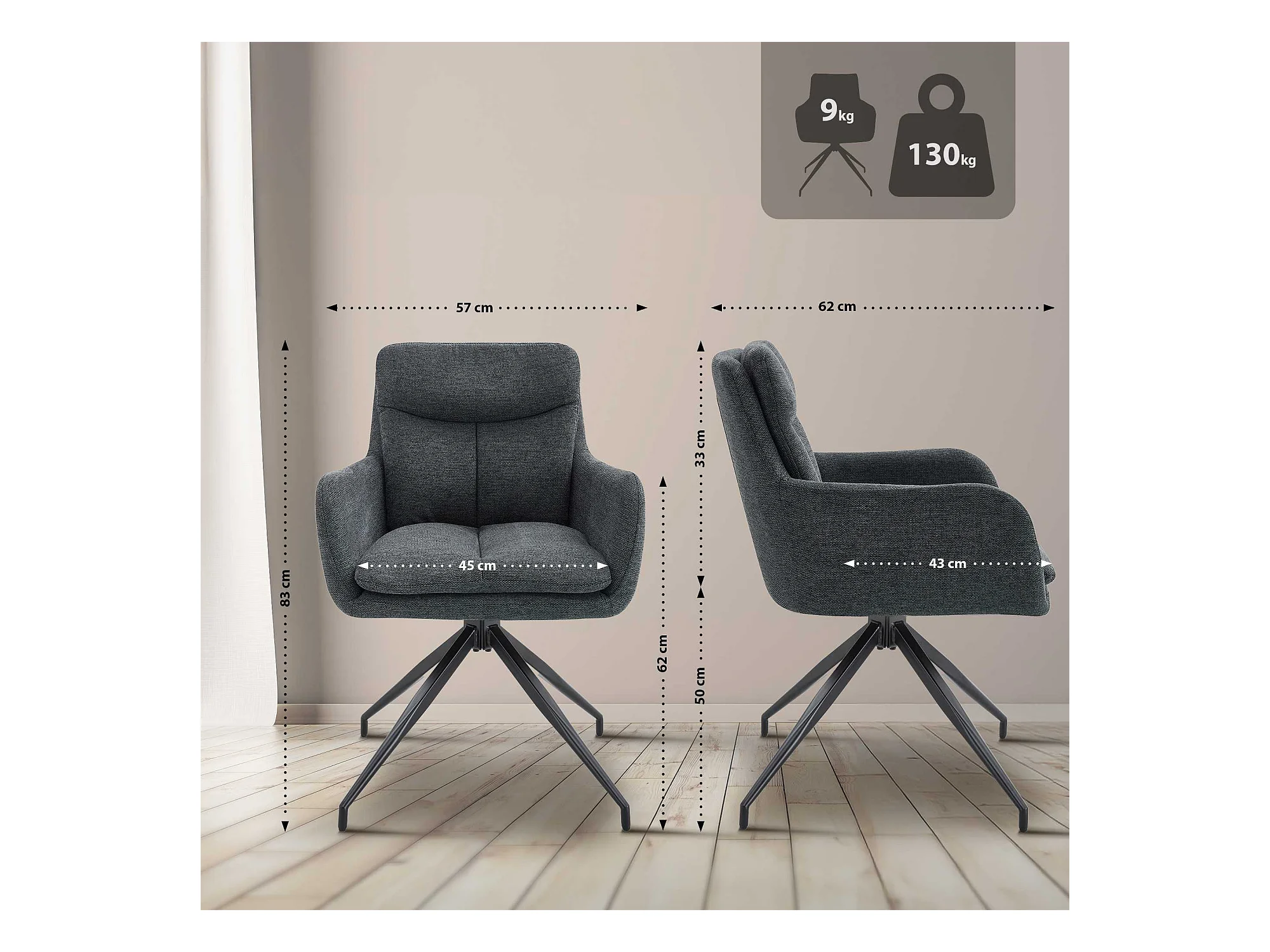 Lot de 2 chaise salle à manger - Tissu - Gris foncé - Somers