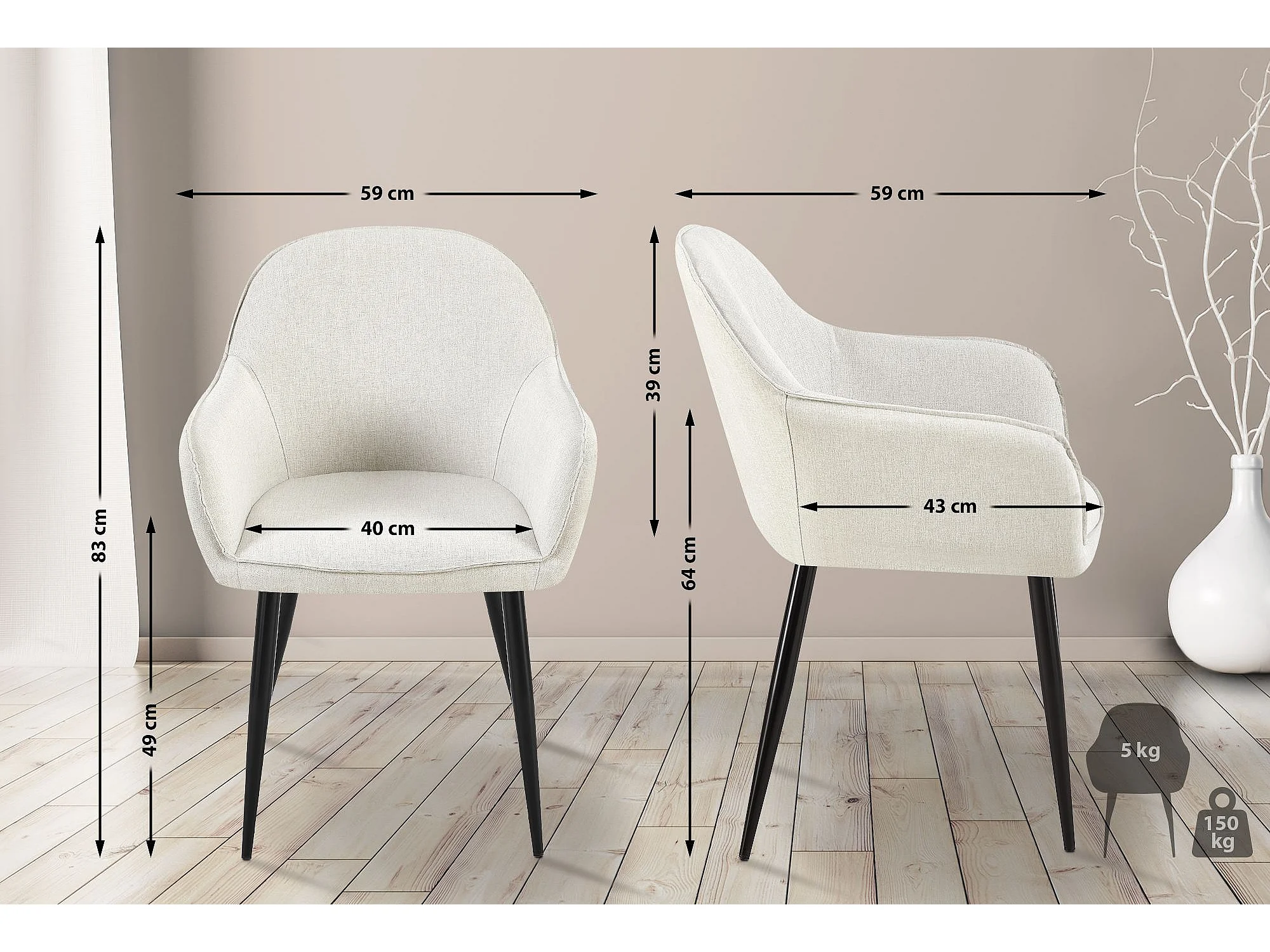 Lot de 2 chaises avec accoudoirs - Tissu - Nature / Crème - Bruce