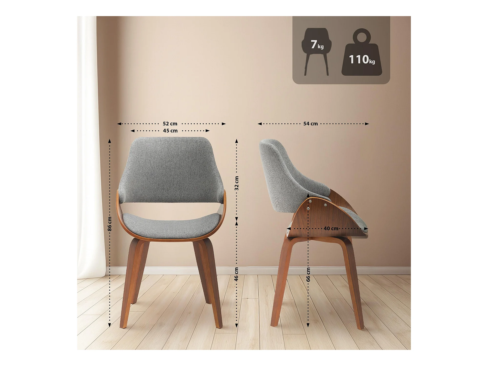 Lot de 2 chaise salle à manger - Tissu - Noyer / Gris foncé - Vangale