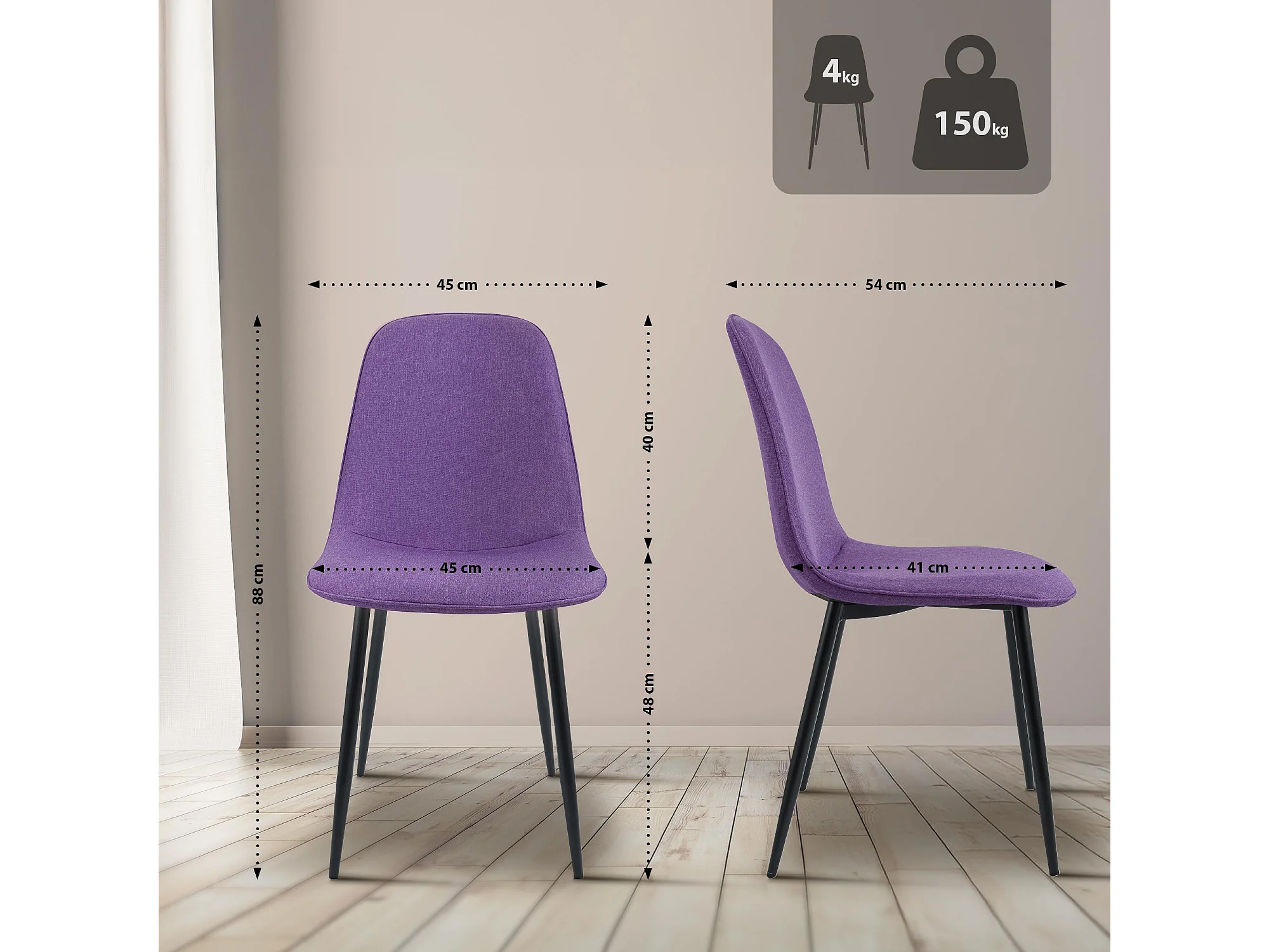 Lot de 2 chaise salle à manger - Tissu - Violet - Maryam