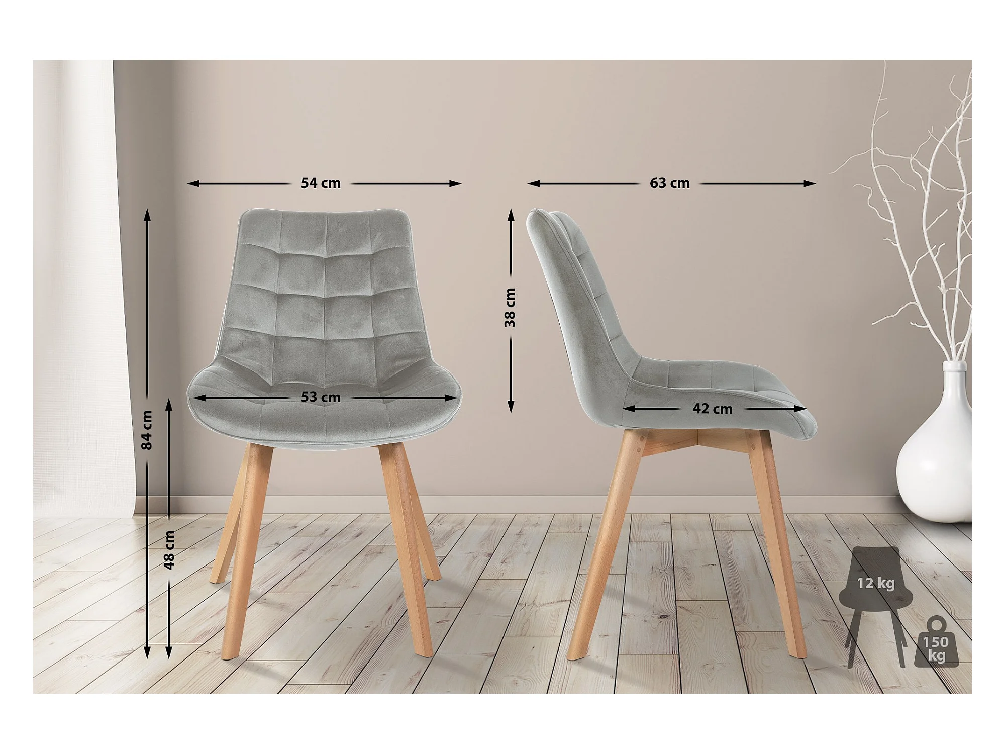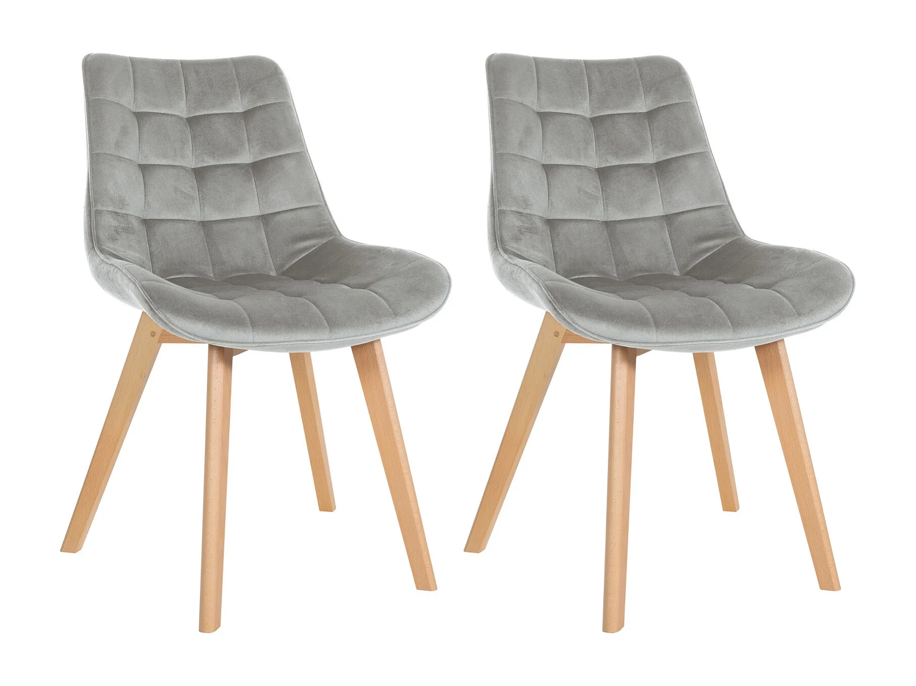 Lot de 2 chaise salle à manger - Velours & Blanc - Gris - Brook