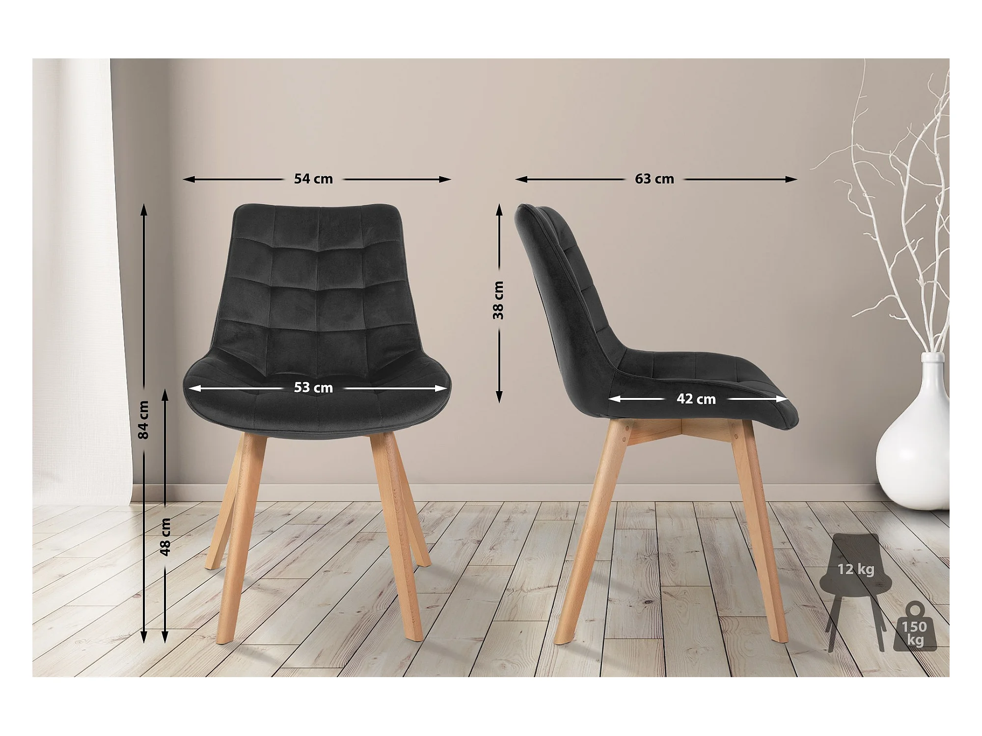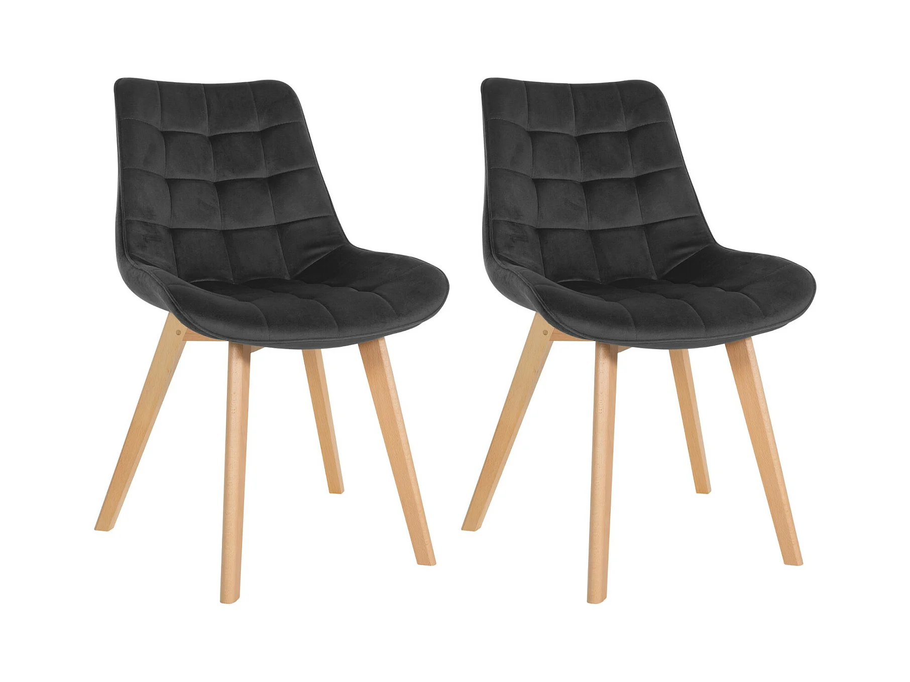 Joel | Lot de 2 chaises de salle à manger rembourrées en velours noir