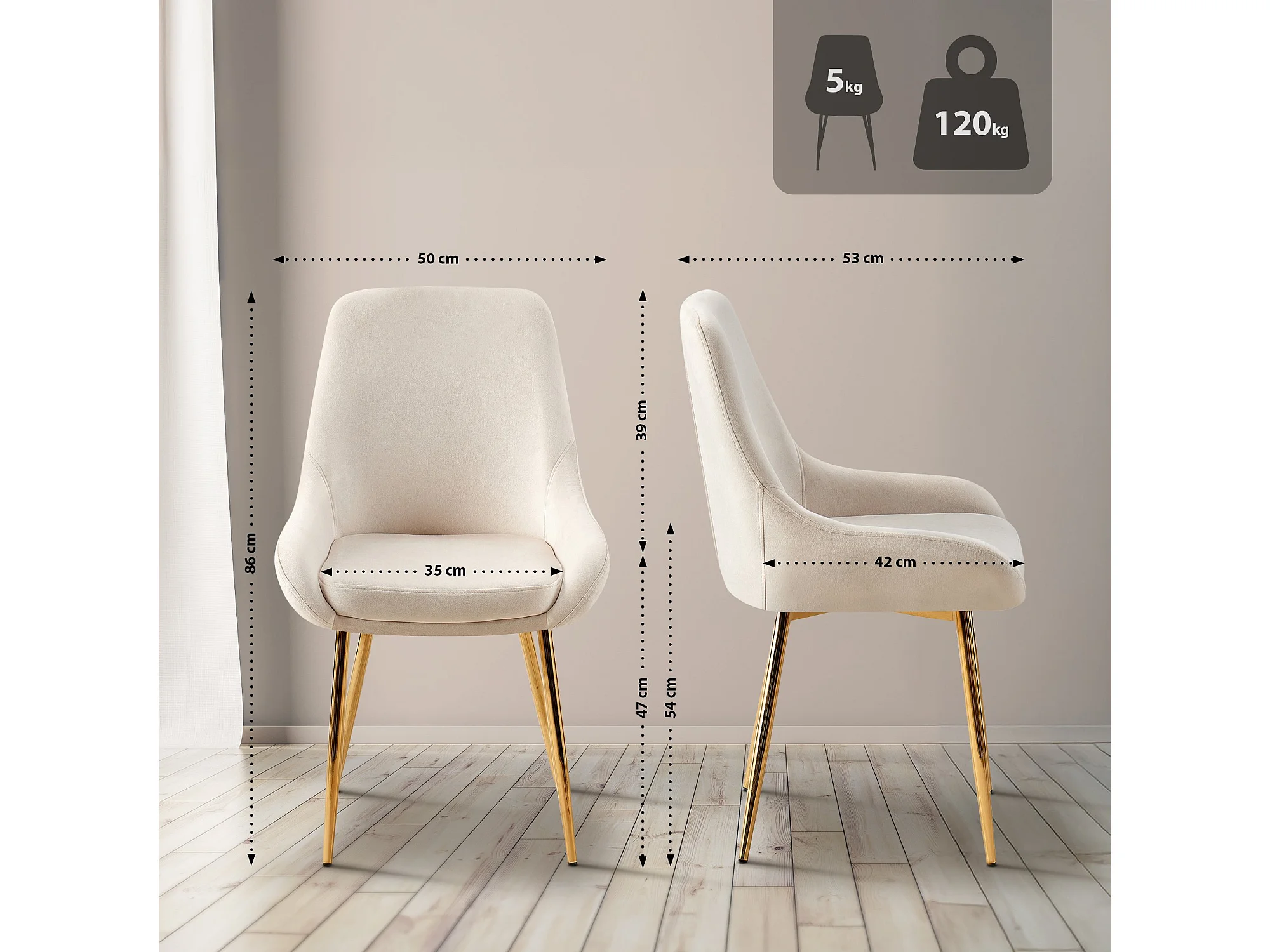 Lot de 2 chaise salle à manger - Velours - Crème - Elmira