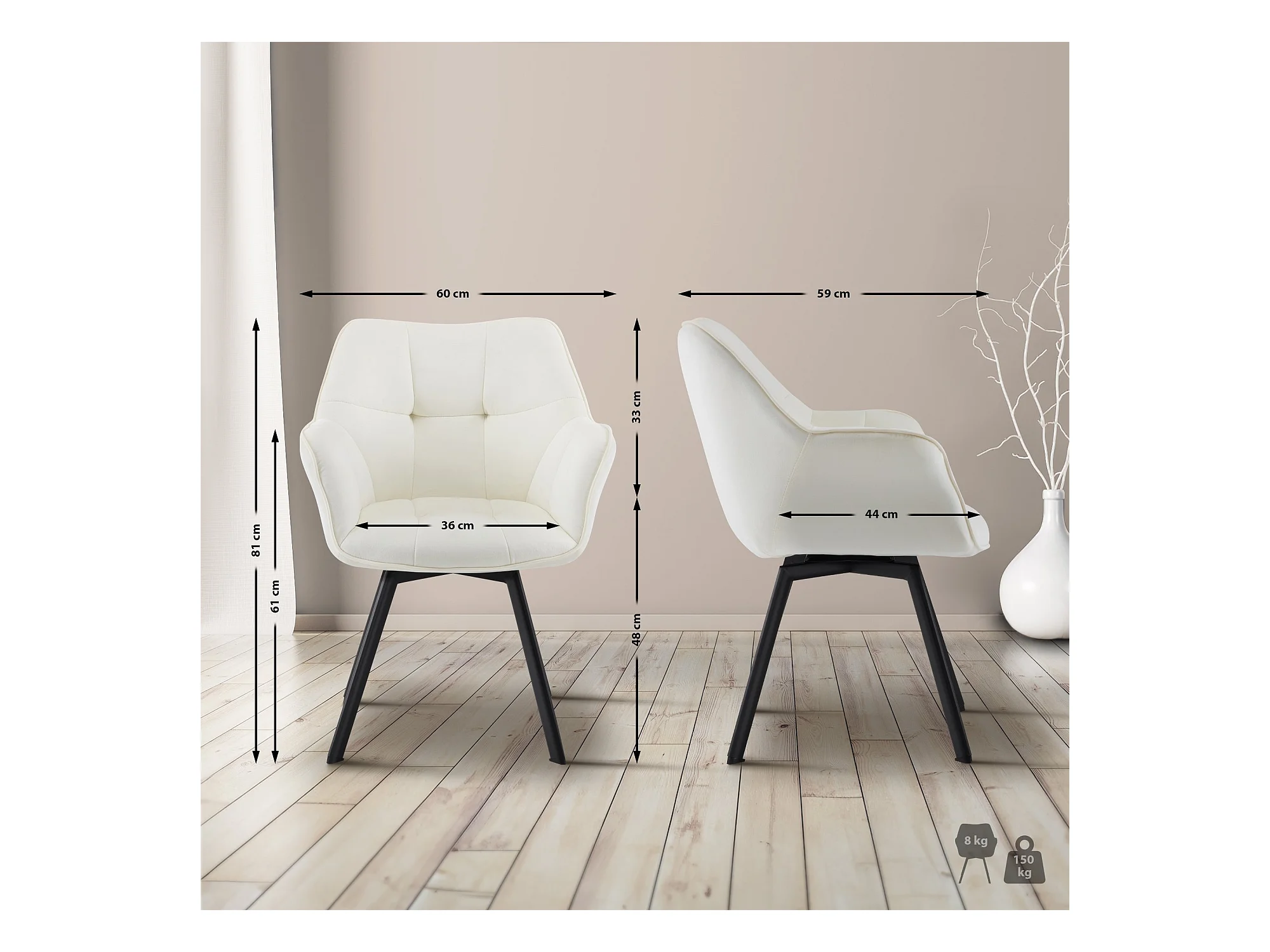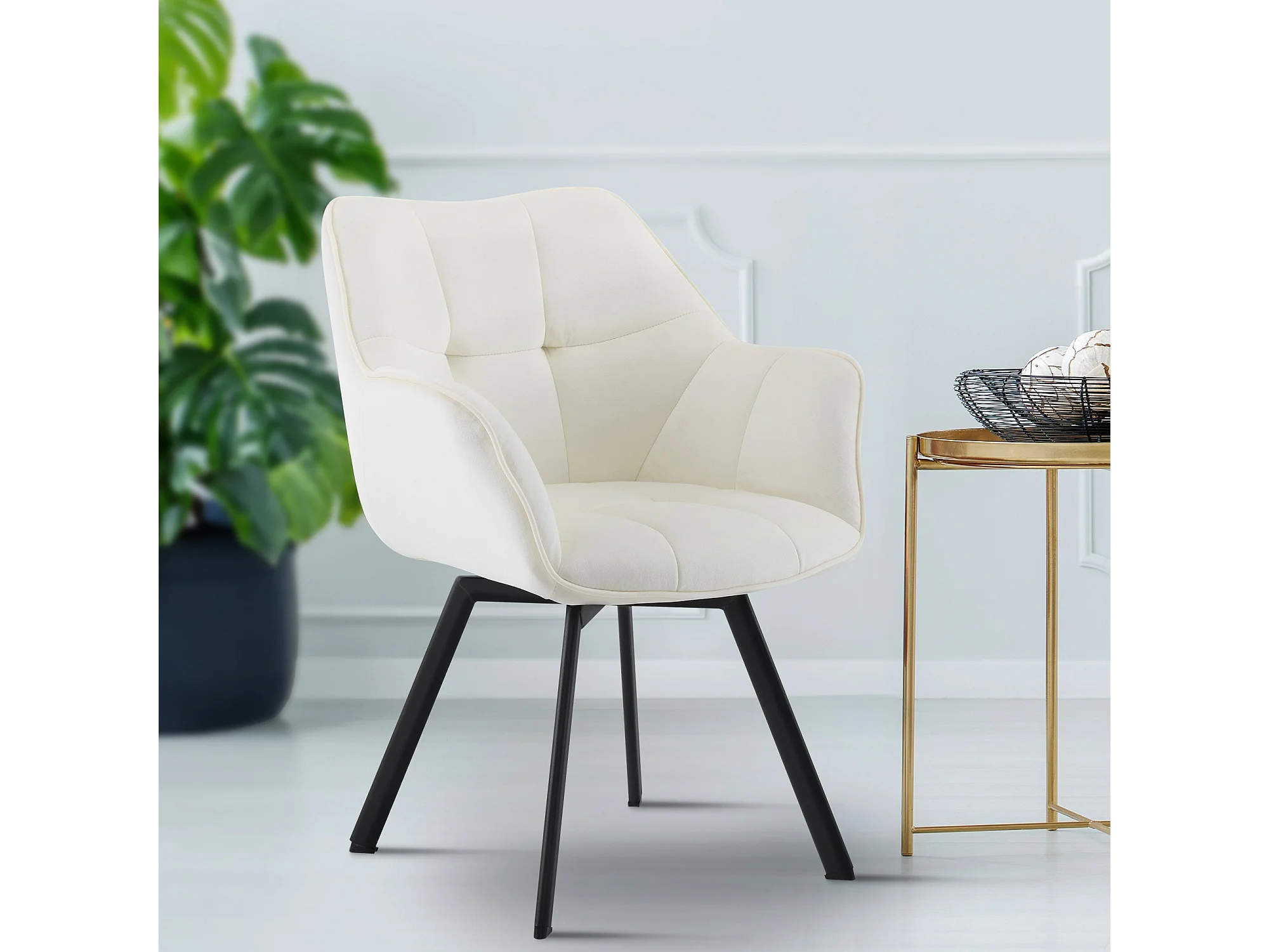 Lot de 2 chaise salle à manger - Velours - Crème - Jordi