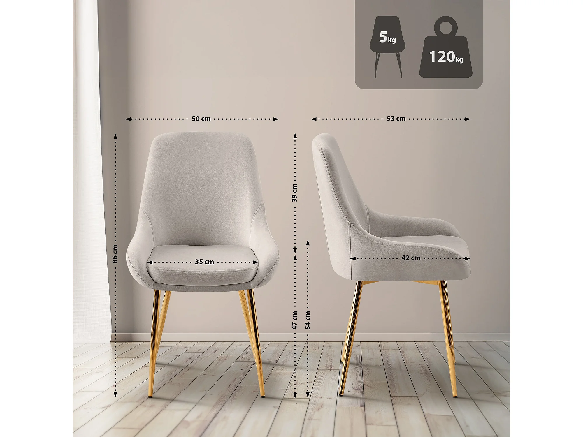 Lot de 2 chaise salle à manger - Velours - Gris clair - Maryam