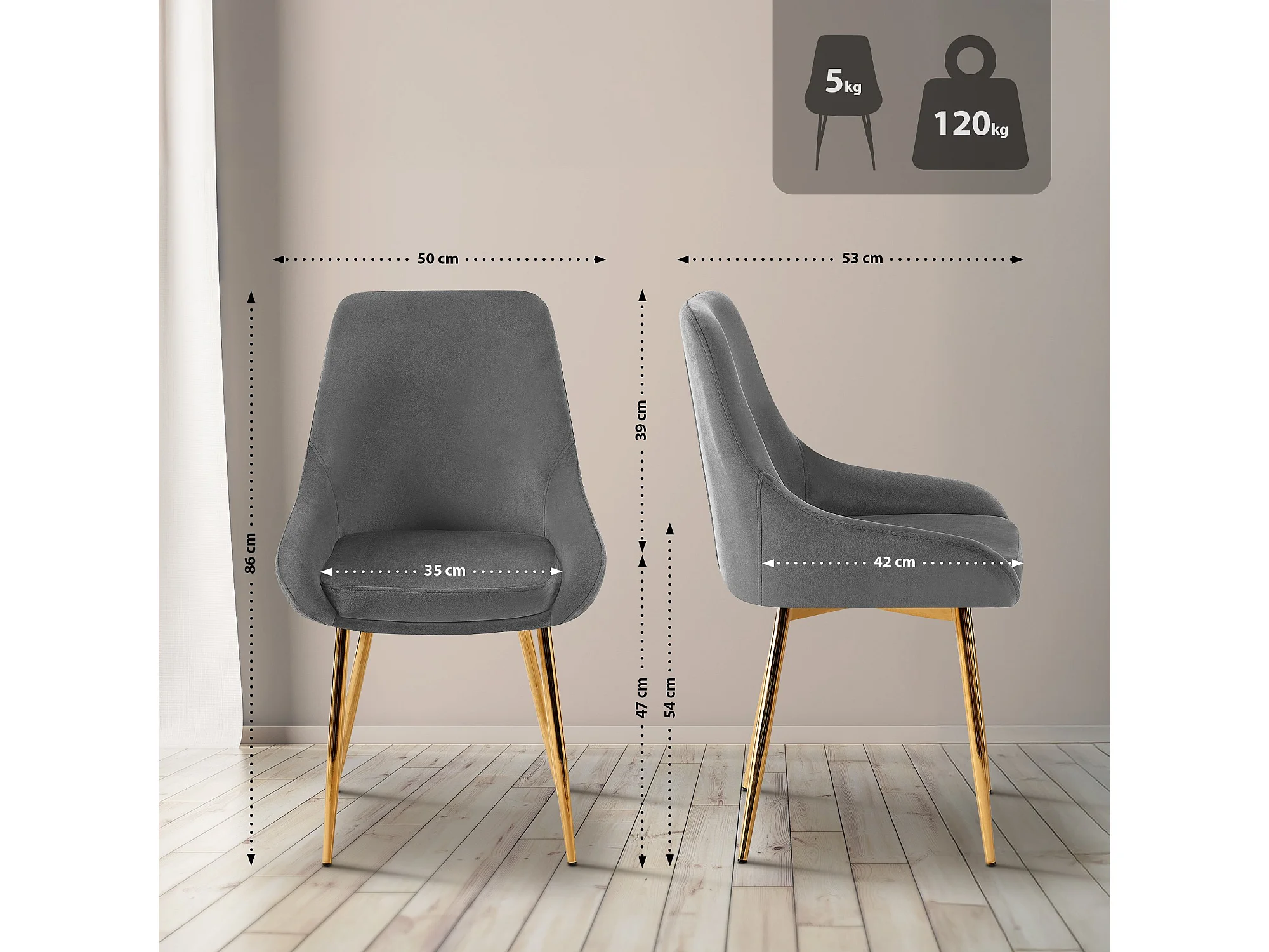 Lot de 2 chaise salle à manger - Velours - Gris foncé - Elmira