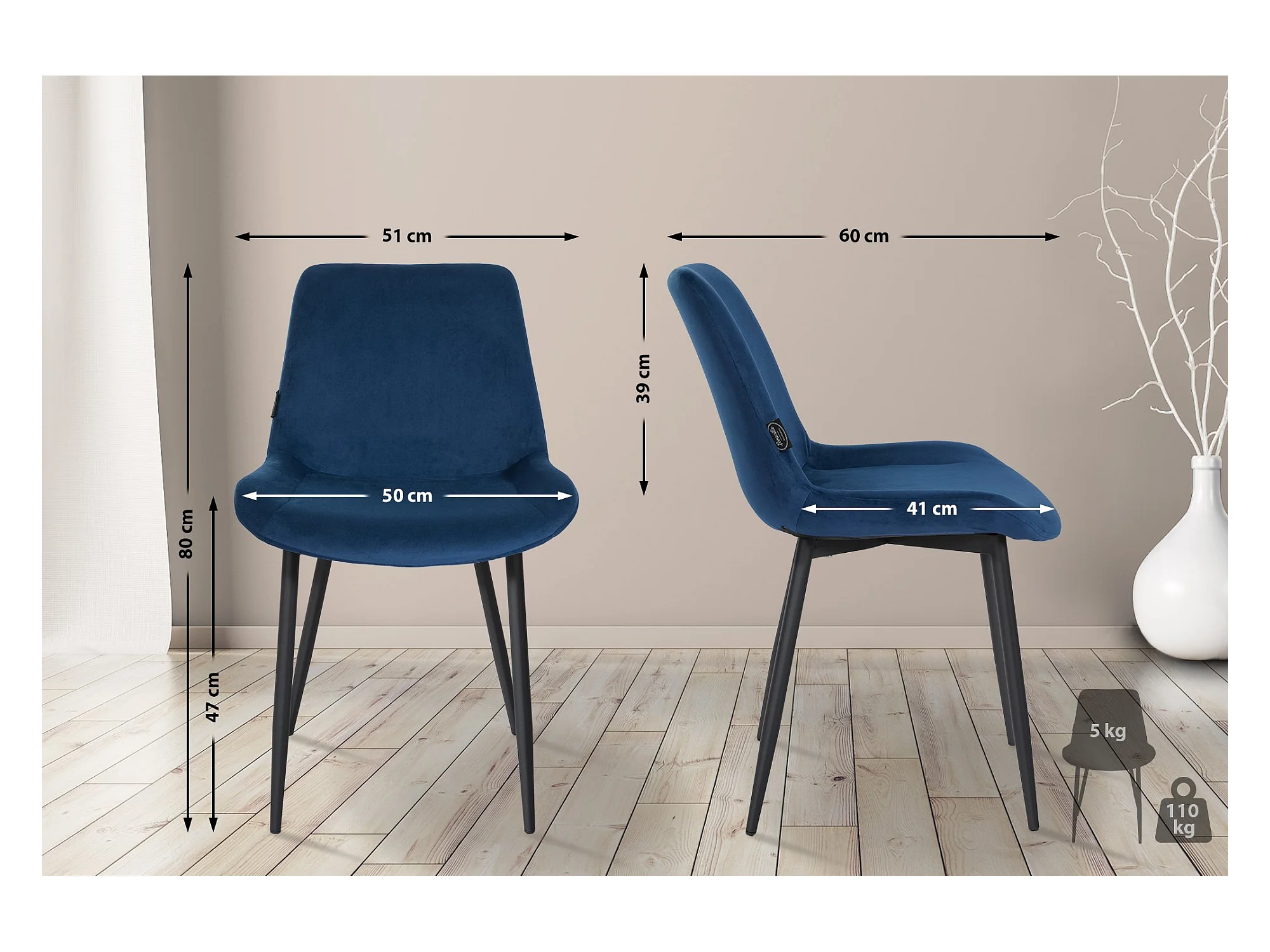 Chaises à manger lot de 2 Velvet velours noir/bleu