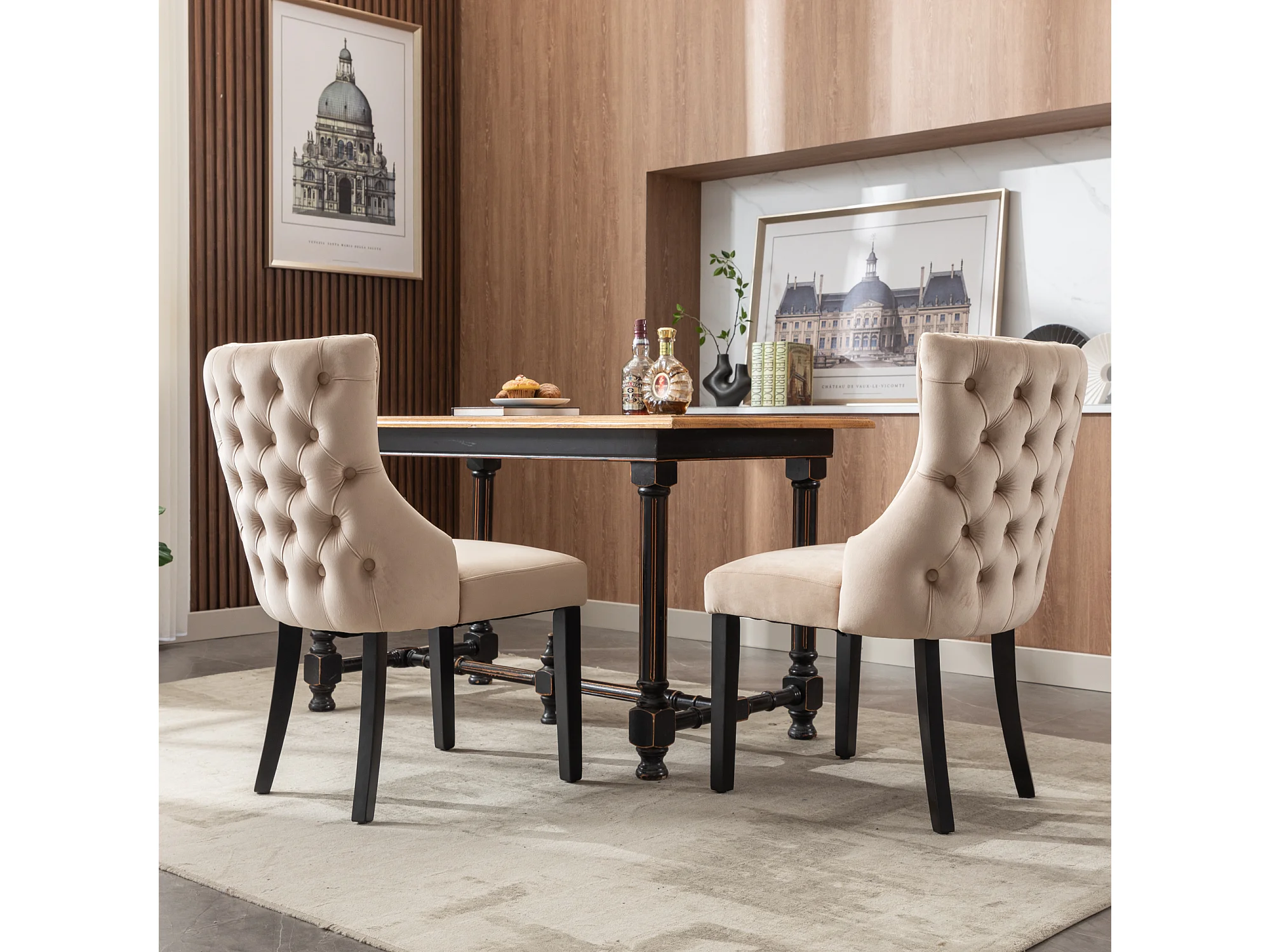 Lot de 2 chaises à manger - 50 x 41 x 91 cm - velours à boutons + cadre en bois massif - velours - beige
