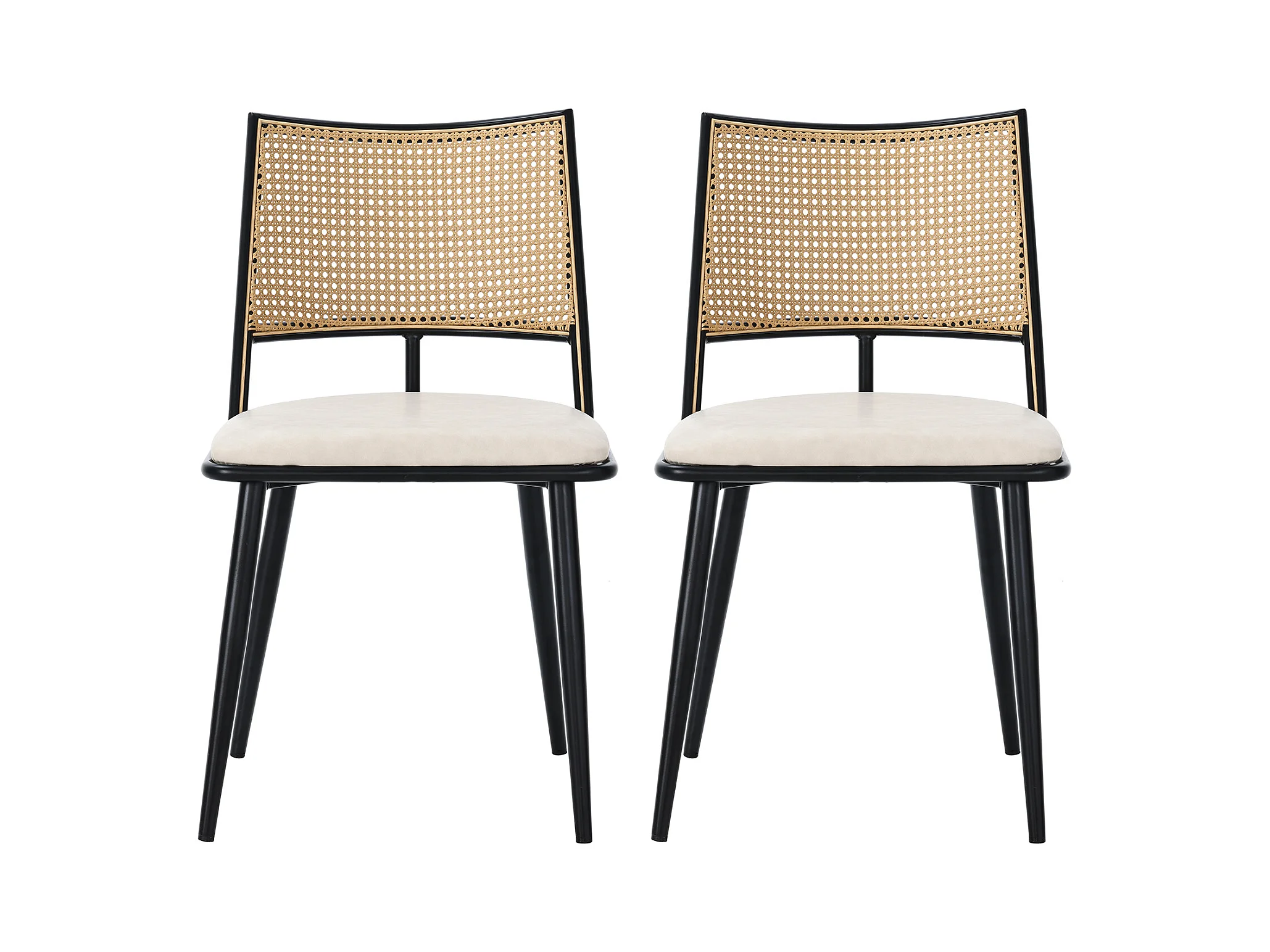 Lot de 2 chaises à manger en similicuir avec dossier en rotin - pieds en bois - noir