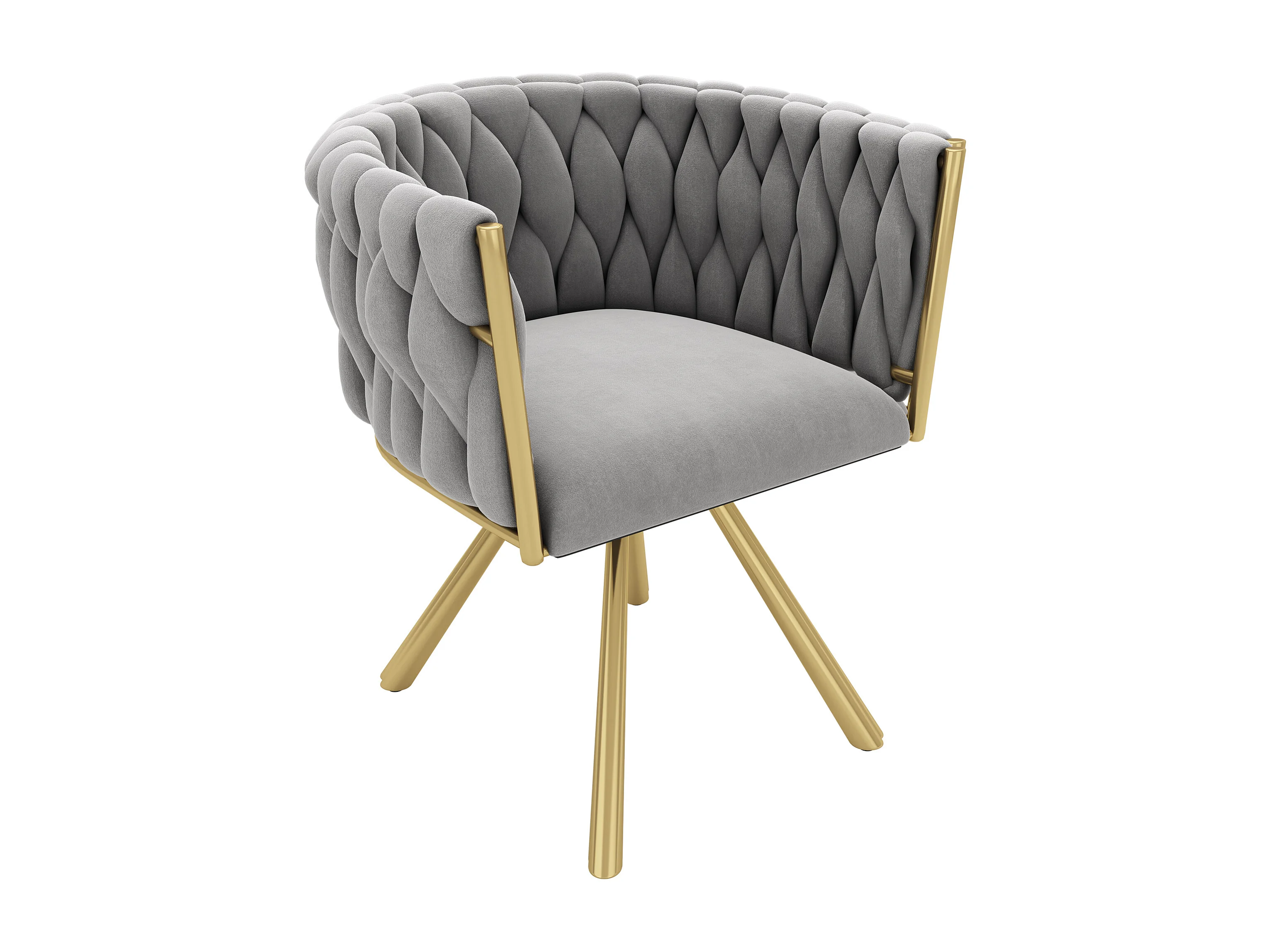 Lot de 2 chaises à manger en velours rotative avec accoudoirs et dossier - pieds en métal doré - gris