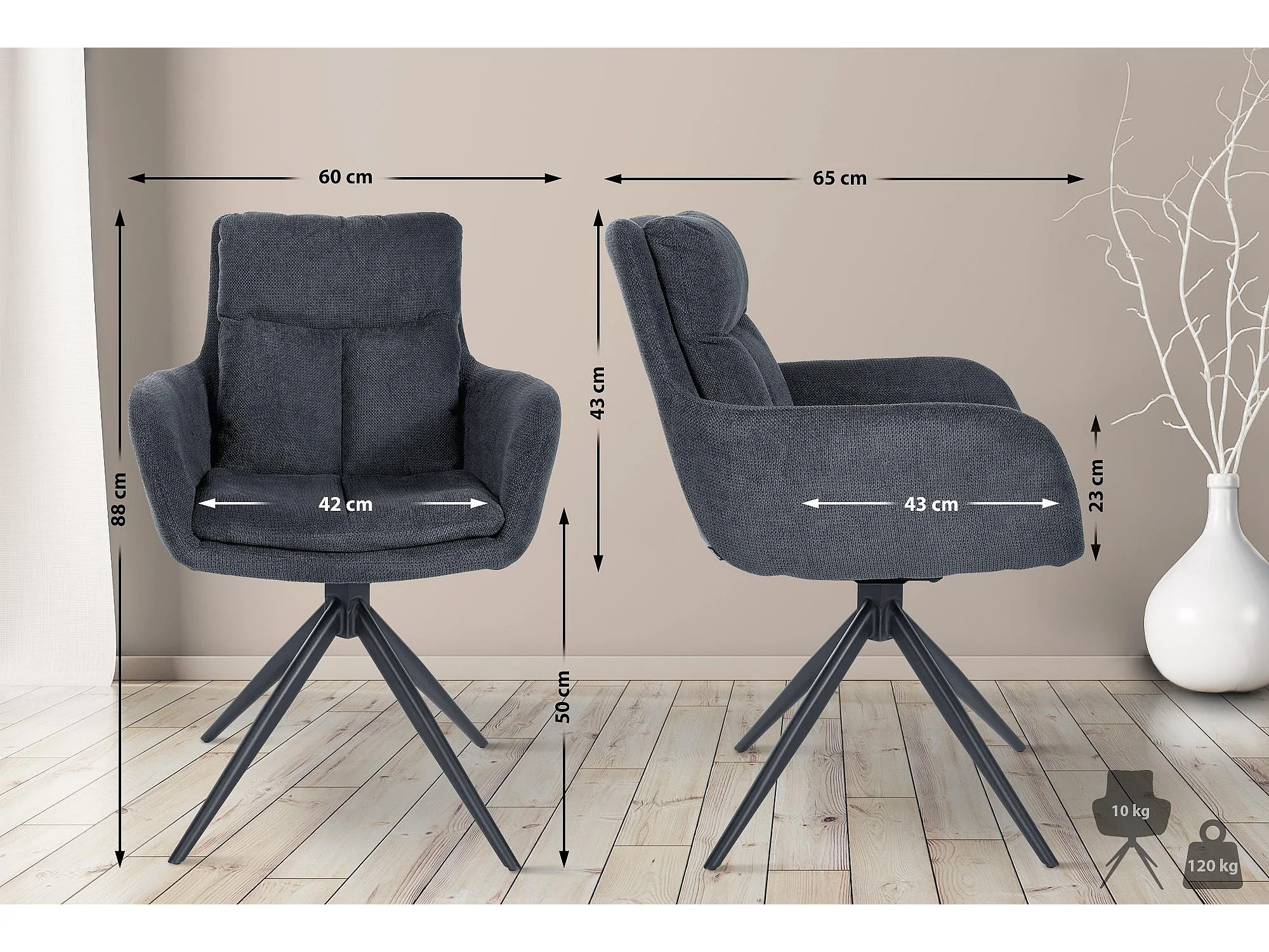 Lot de 2 chaises avec accoudoirs - Tissu - Noir - Vilas