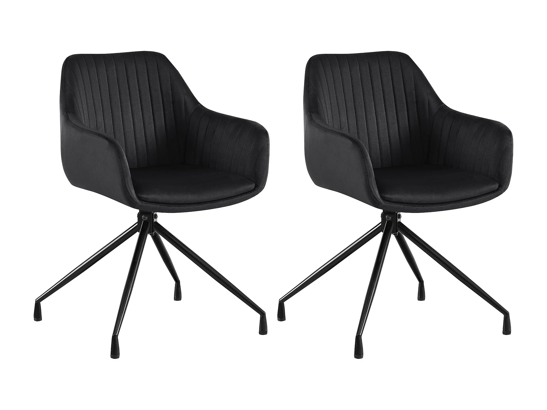 Lot de 2 chaises avec accoudoirs - Velours - Noir - Welby
