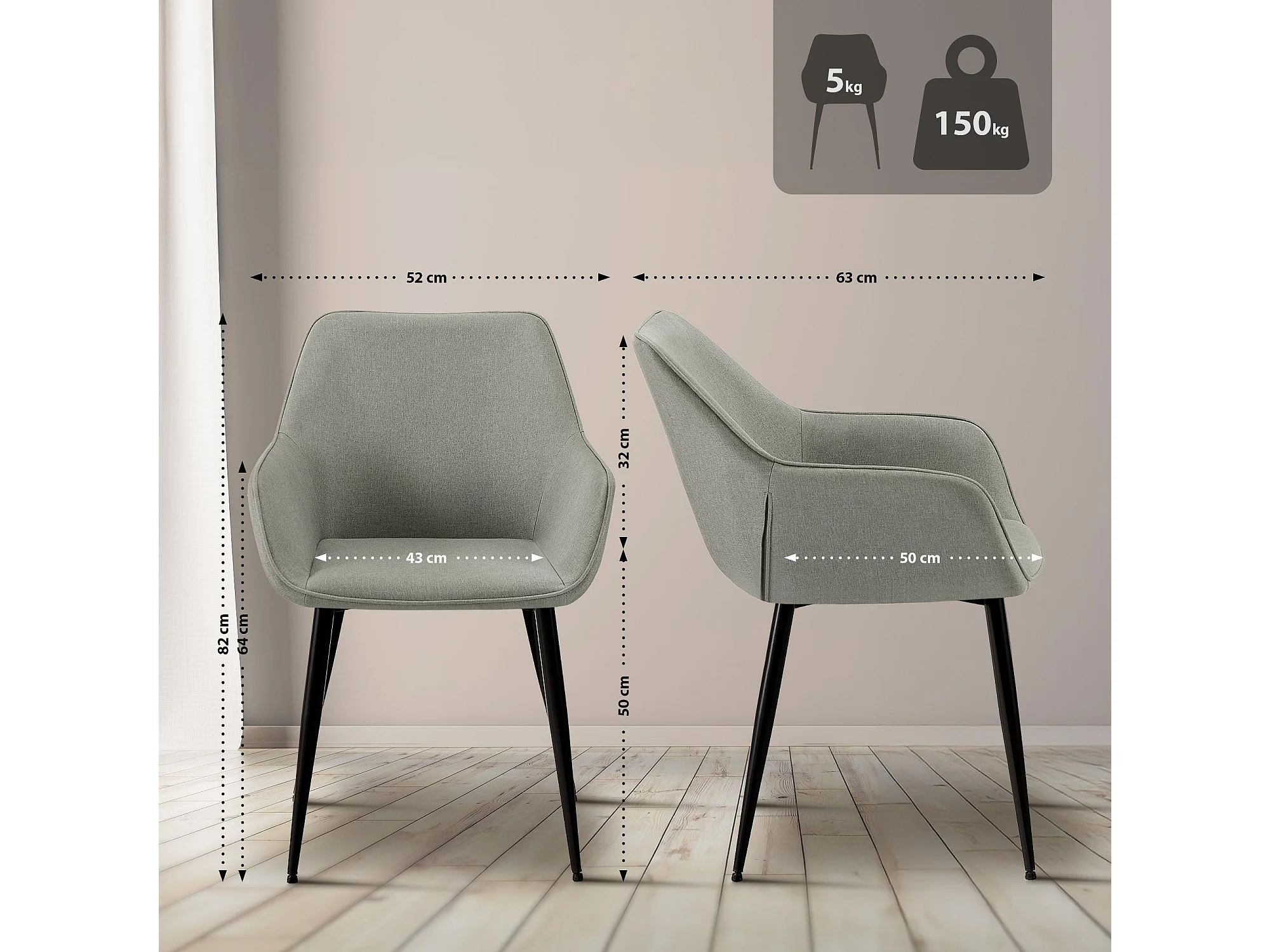 Lot de 2 chaises avec accoudoirs - Tissu - Gris clair - Luena