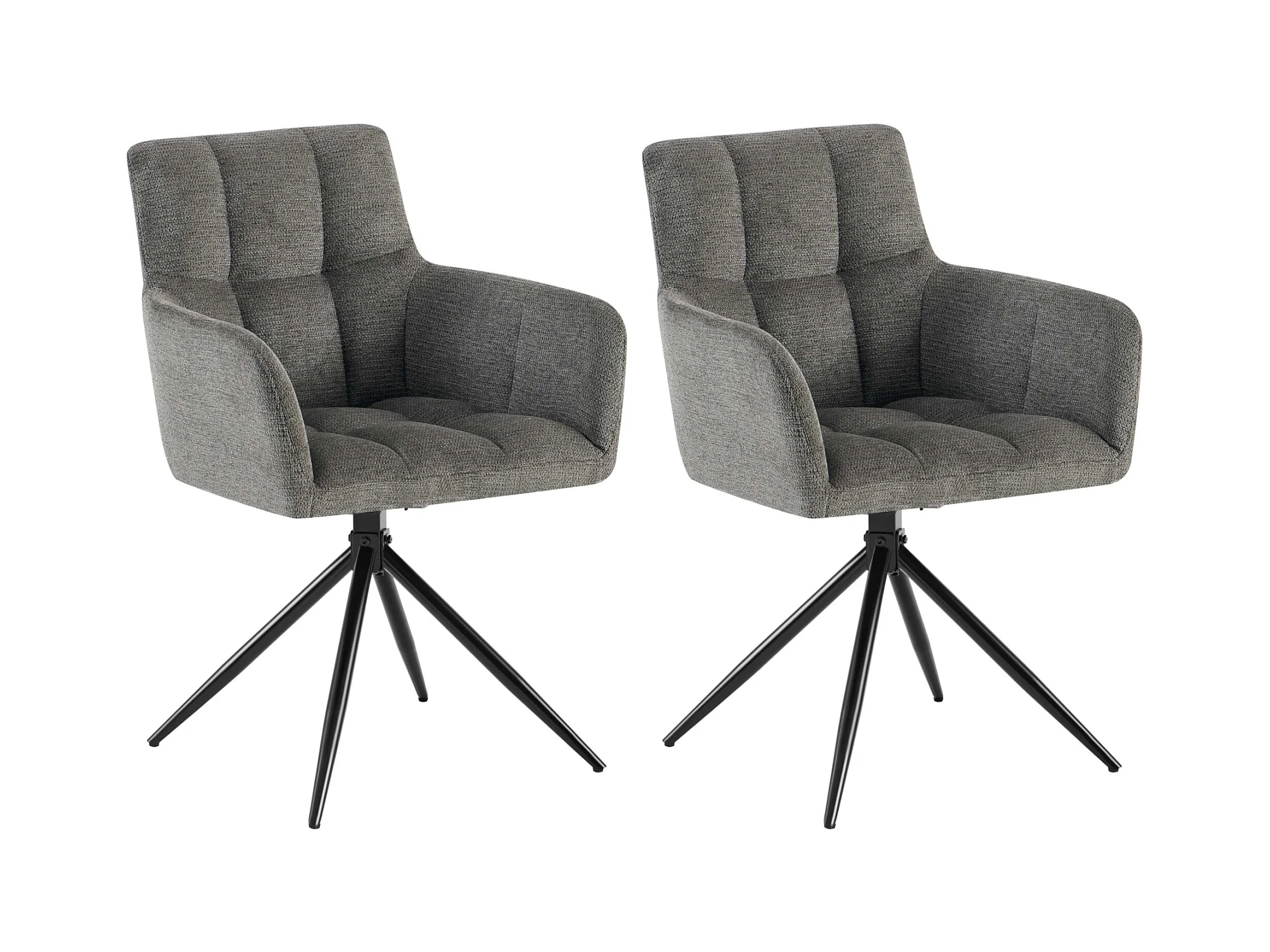 Lot de 2 chaises avec accoudoirs - Tissu - Gris foncé - Jonah