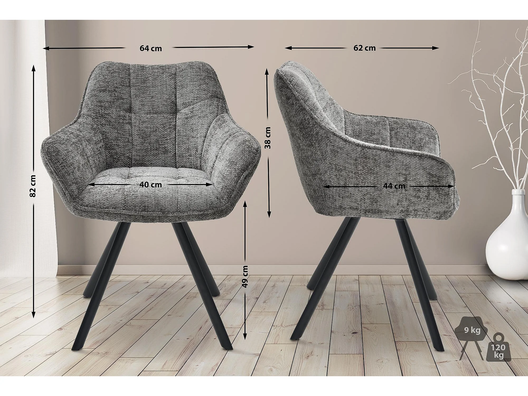 Lot de 2 chaises avec accoudoirs - Tissu - Gris foncé - Scott