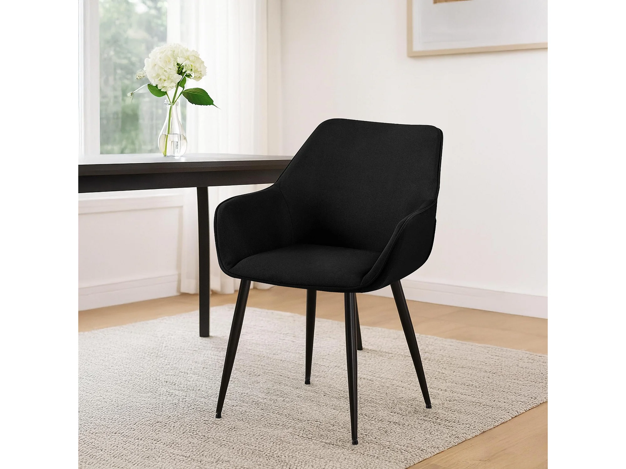 Lot de 2 chaises avec accoudoirs - Tissu - Noir - Luena
