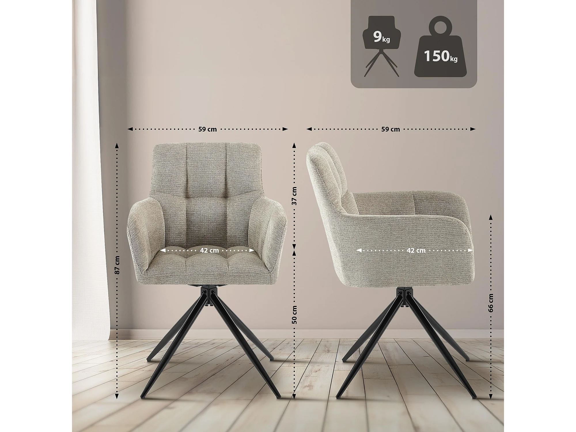 Lot de 2 chaises avec accoudoirs - Tissu - Taupe - Jonah