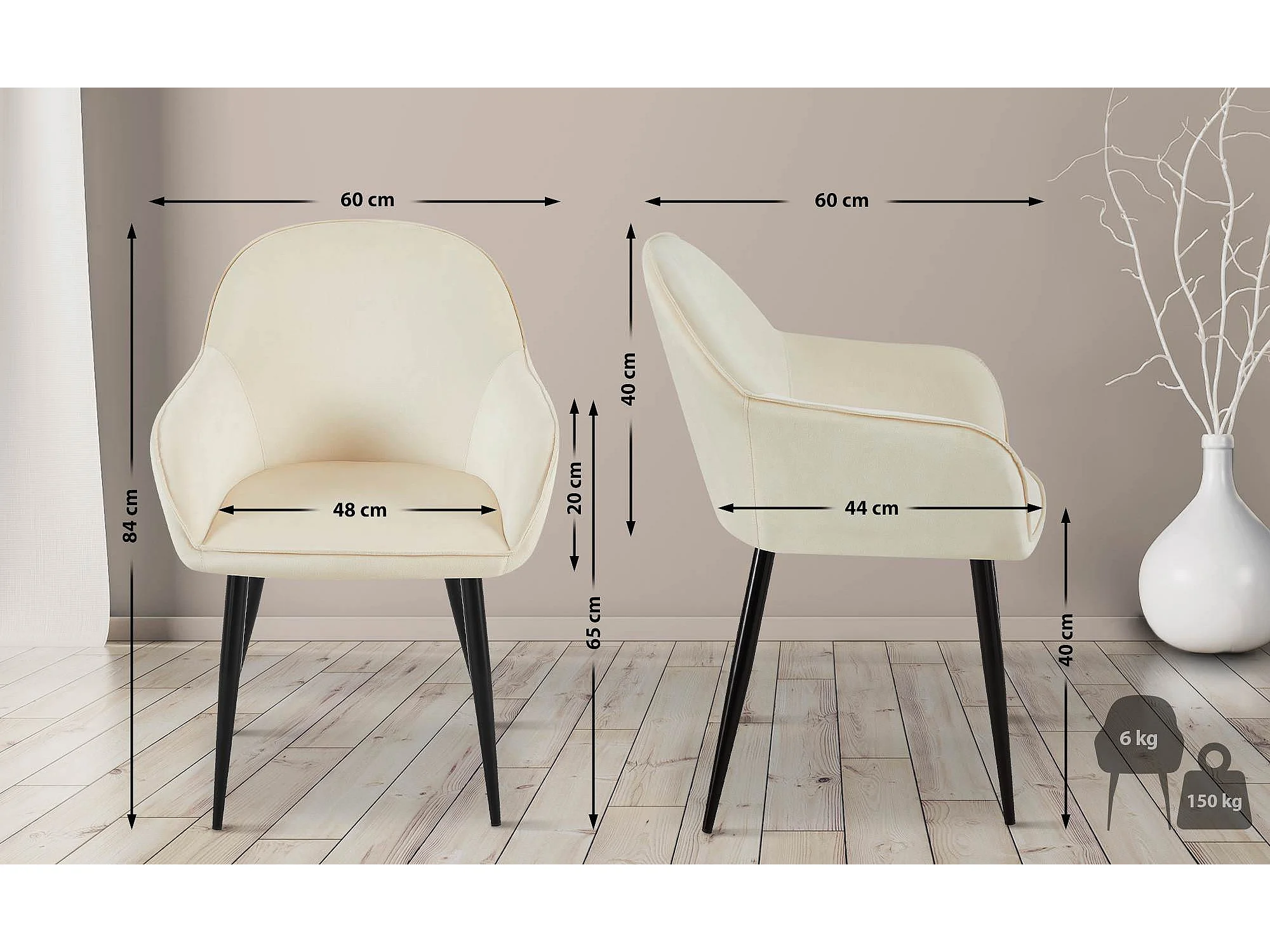 Lot de 2 chaises avec accoudoirs - Velours - Crème - Welby