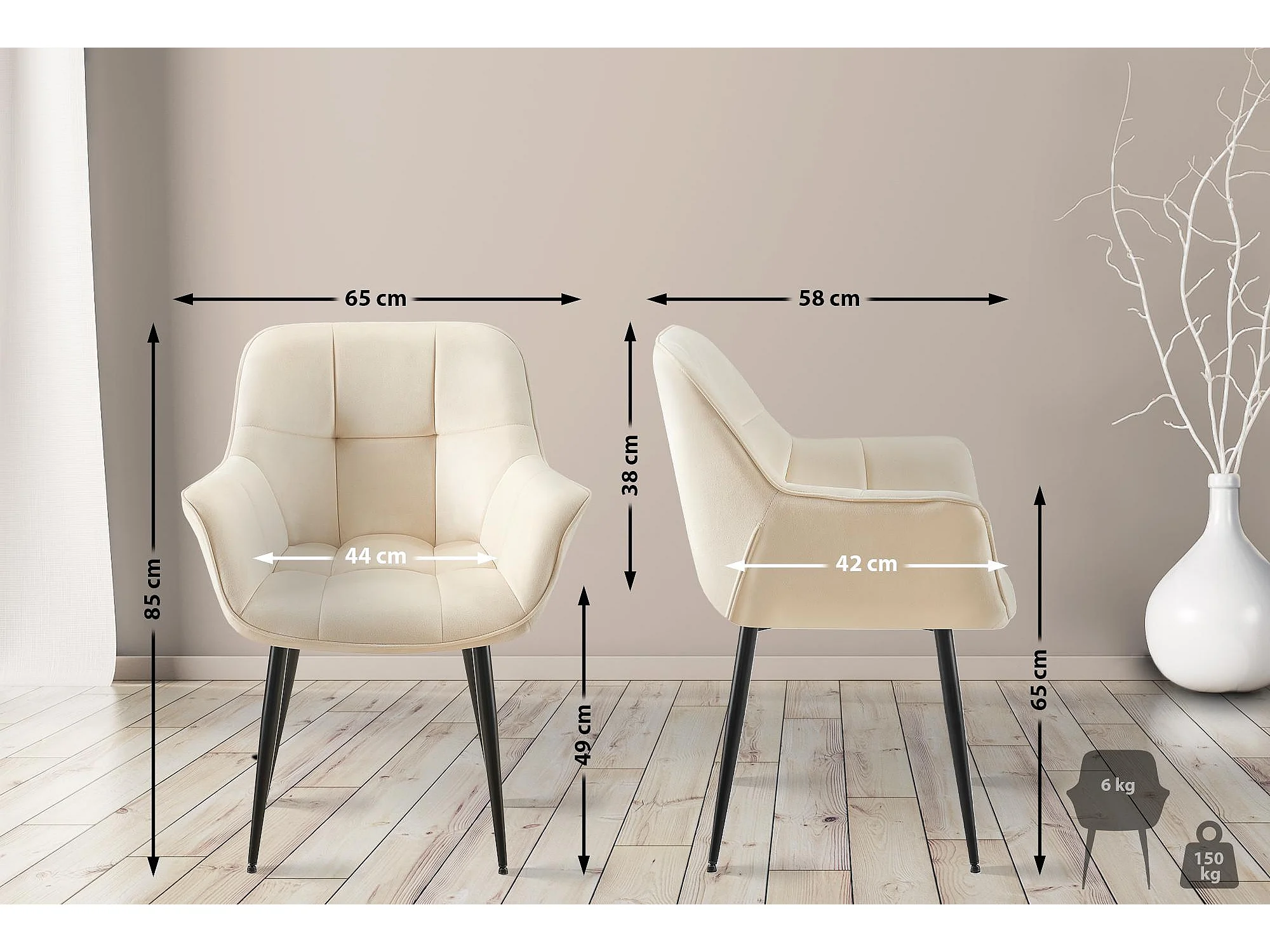Lot de 2 chaises avec accoudoirs - Velours - Crème - Roseville